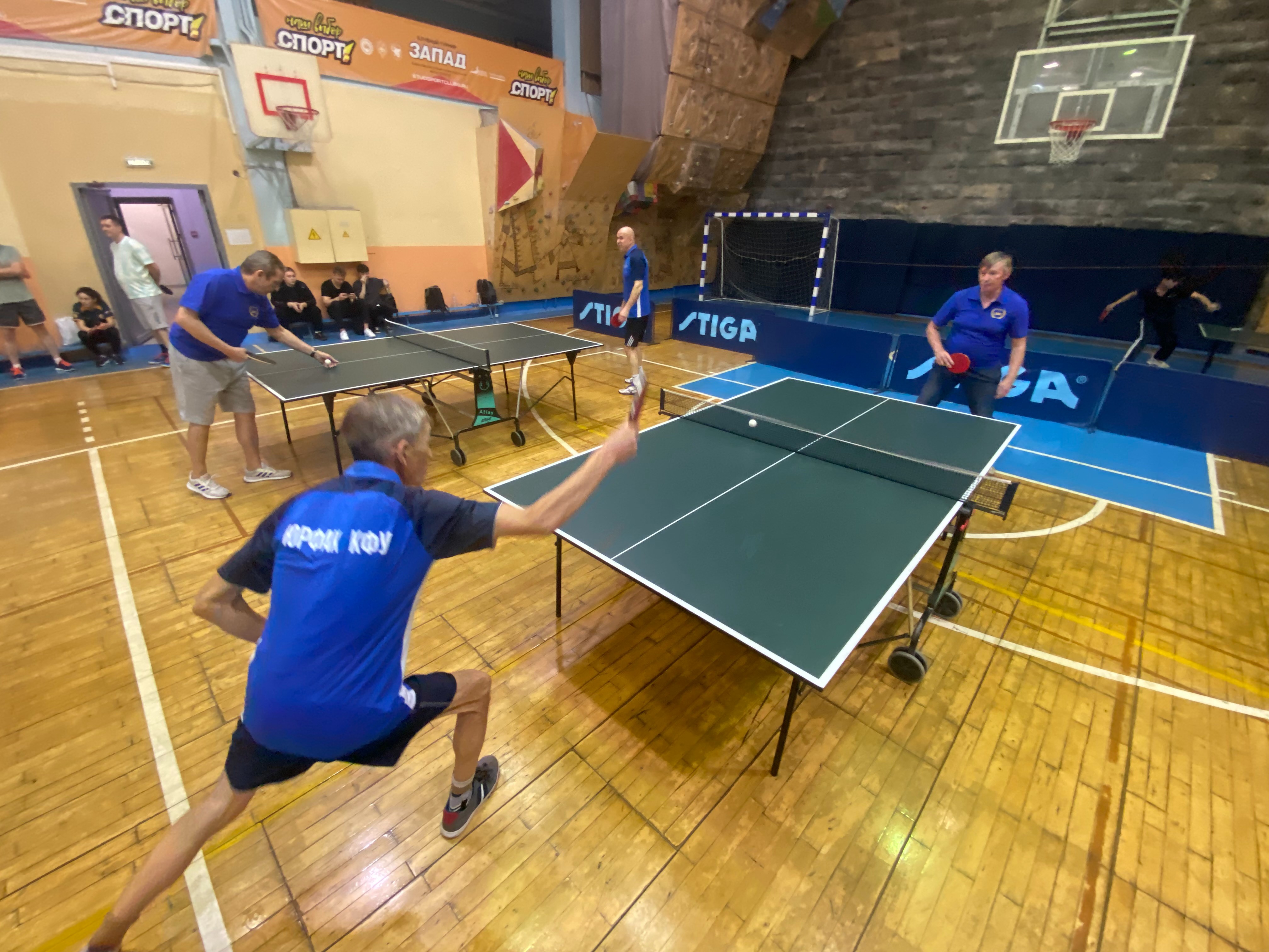 26 ноября в спортивном зале КСК «УНИКС» состоялся командный турнир по настольному теннису среди работников и ветеранов КФУ, посвященный 219-летию Казанского университета. Приняли участие 9 команд из разных структурных подразделений. В составах команд играли двое мужчин и одна женщина. Команды сыграли по восемь матчей, которые прошли в упорной и интересной борьбе. Во всех играх с соперниками победу одержала команда Института геологии и нефтегазовых технологий. Она получила кубок победителя, дипломы и медали. На втором месте команда ИВМиИТ, на третьем команда Кафедры физического воспитания и спорта. Они награждены дипломами и медалями, а все команды сладкими призами.