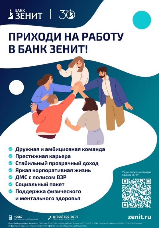 ПАО Банк ЗЕНИТ готов рассмотреть возможность трудоустройства выпускников на стартовые позиции.