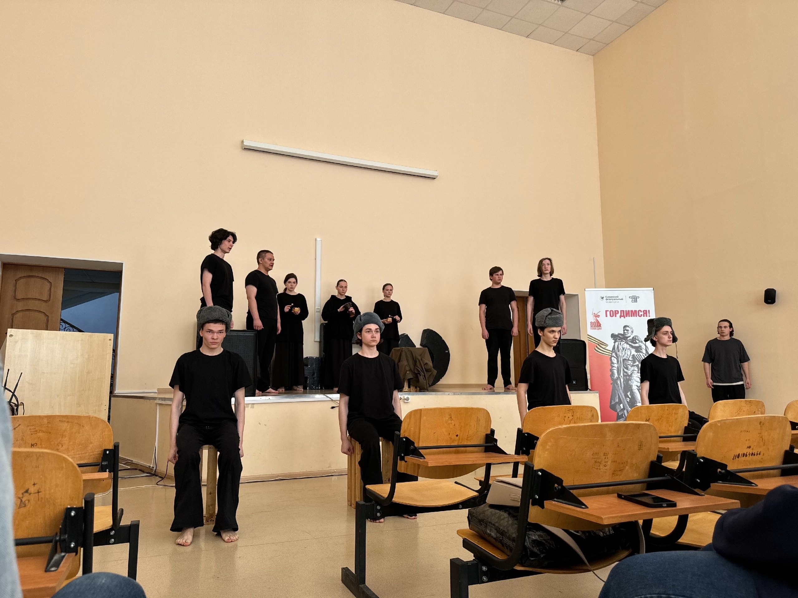 Уникальный проект был представлен в стенах нашего института. Постановка, созданная в технике вербатим студентами Казанского театрального училища под руководством режиссера Татьяны Лядовой. Спектакли вербатим полностью состоят из реальных монологов или диалогов участников или свидетелей каких-либо событий. Одна из сложностей вербатима — актёрская игра. Исполнитель роли должен создать правдоподобный портрет живого человека, повторить его интонации, передать паузы и манеру речи. В основе спектакля — реальные рассказы участников и очевидцев событий Великой Отечественной войны, а также других военных конфликтов.