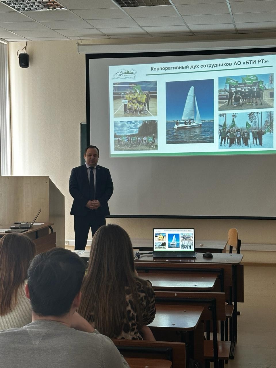 Специалисты АО «БТИ РТ» провели 1 марта 2024 года практические занятия для студентов 3 и 4 курсов направления «Землеустройство и кадастры» Института экологии и природопользования Казанского федерального университета. Они наглядно продемонстрировали специфику работы: ознакомили с имеющимся геодезическим оборудованием и его назначением; с программными продуктами, которые используются для работы, рассказали о видах деятельности организации. Рассказали про все виды работ выполняемых в настоящее время, географию выполняемых работ, озвучили оплату будущих специалистов и возможности организации досуга.