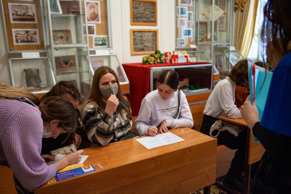 После основной части мероприятия абитуриенты, предварительно разделившись на команды, отправились на квест «Alma mater», чтобы вместе с известными выпускниками и учеными университета, как Лев Толстой, Александр Бутлеров и другие, разгадать тайны вуза и лучше узнать о нем из первых уст – от студентов и исторических личностей.