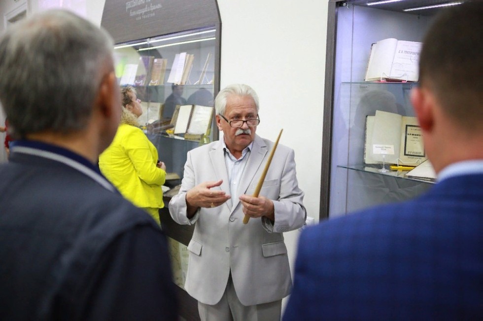 Гостям мероприятия представилась уникальная возможность посетить первую экскурсию, которую провёл профессор кафедры русского языка и литературы Анатолий Разживин. Анатолий Ильич рассказал о музейной экспозиции: «Наш институт хранит коллекции книг, содержащих около полумиллиона томов, более тысячи из которых относятся к редким экземплярам. Удивительно, что самое редкое издание относится к ХVIII веку: фонд сохранил «Часослов» из домовой церкви епархиального училища и Библию 1751 года. Представлены и другие духовные и рукописные книги XIX века, выполненные арабской вязью: «Суфийские стихи», «Ифтар».Здесь мы можем увидеть не только уникальные экземпляры, содержащие историю учебного заведения, но и самые известные научные и художественные труды. В фонде Музея представлены экспозиции в честь 275-летия Гавриила Романовича Державина, 190-летия Льва Николаевича Толстого, произведения которого продемонстрированы в прижизненных изданиях».