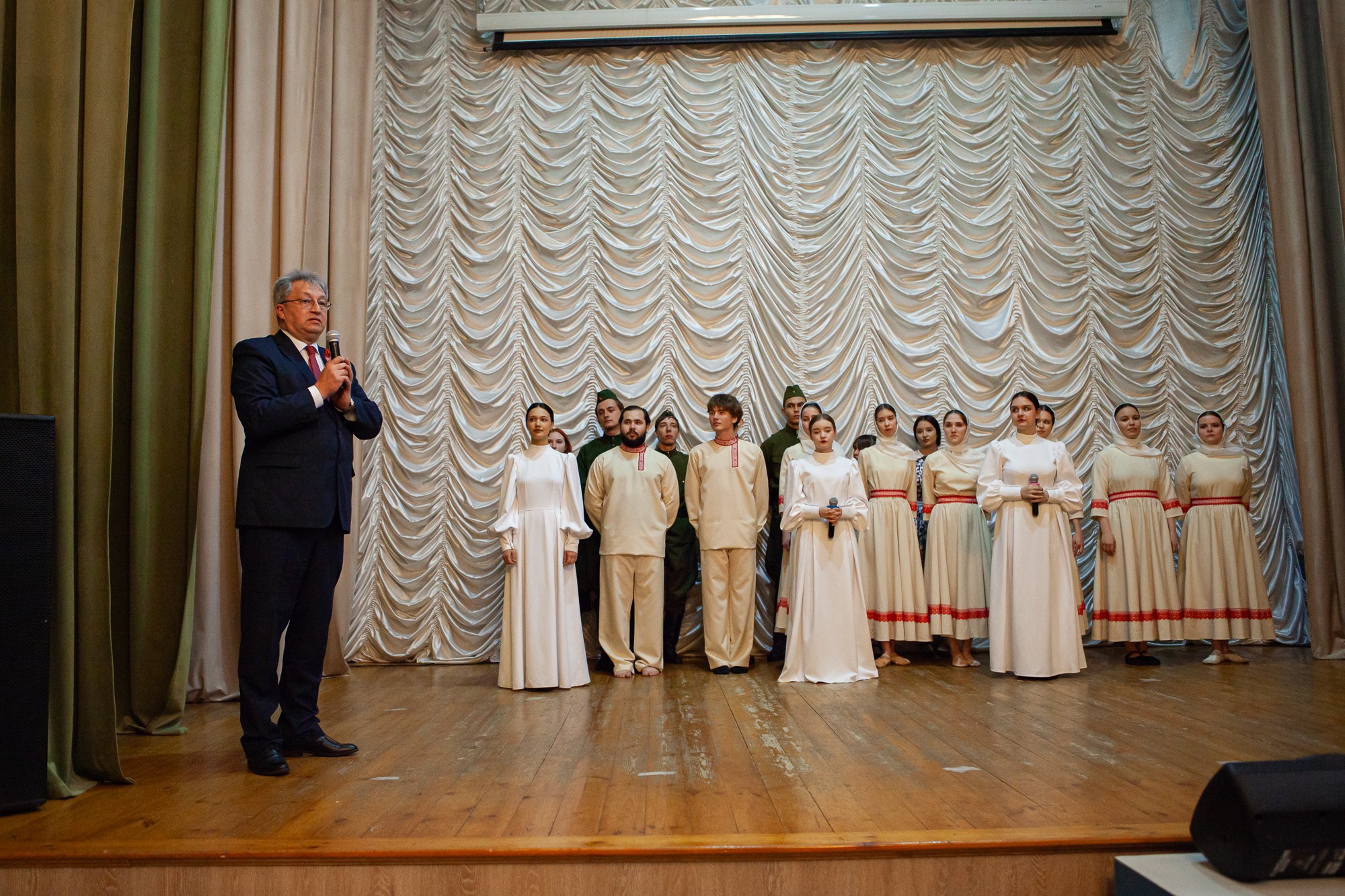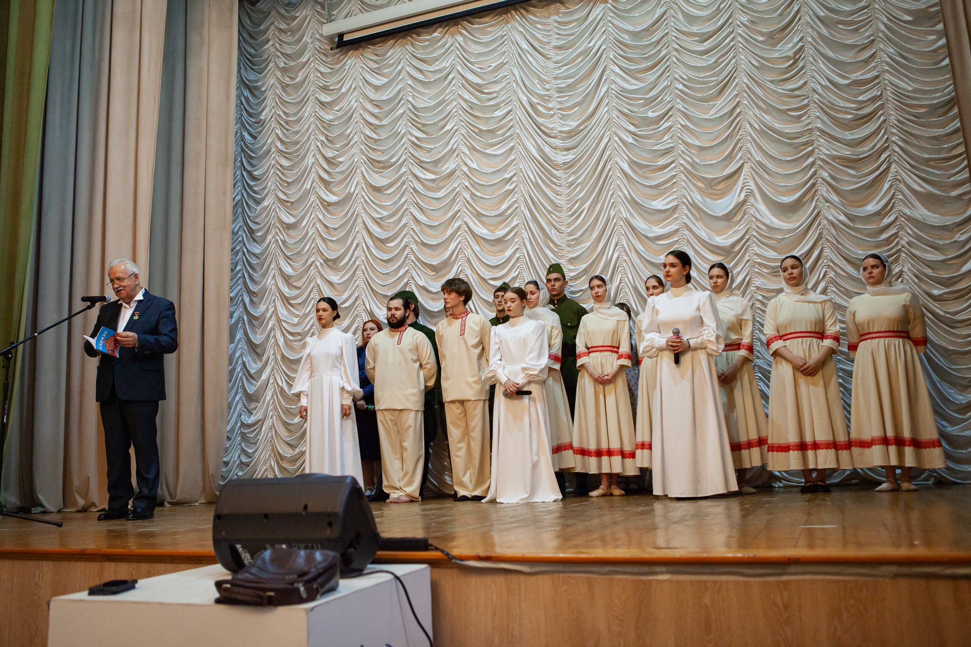 По традиции, Анатолий Ильич презентовал свежий выпуск литературного альманаха «Университетский Парнас». Уже восьмой год подряд вуз собирает и публикует творчество своих студентов, преподавателей и выпускников – стихи, прозу, мемуары, открывая новые имена. Профессор зачитал со сцены пронзительные строки, посвященные памяти о минувшей войне и продолжающейся спецоперации.