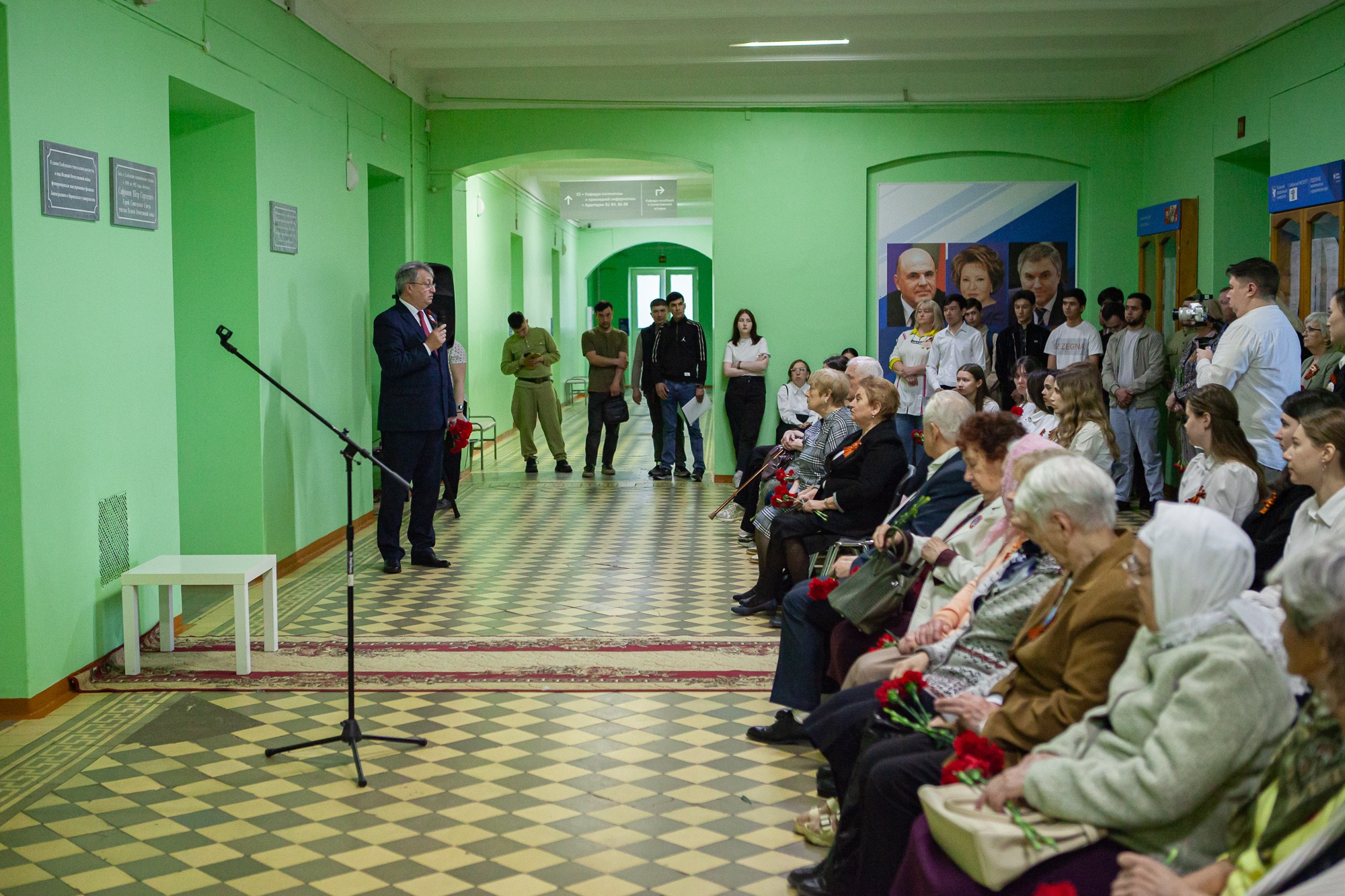 В стенах института для почетных гостей, школьников и студентов состоялся митинг у мемориальных досок преподавателям: участникам Великой Отечественной войны, полным кавалерам ордена Славы Рифкату Гайнуллину и Владимиру Мясникову, эвакуированным ученым Ленинградского и Воронежского университетов.