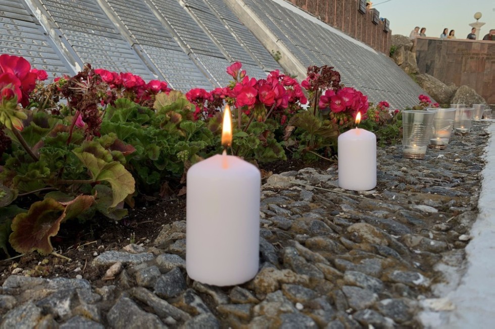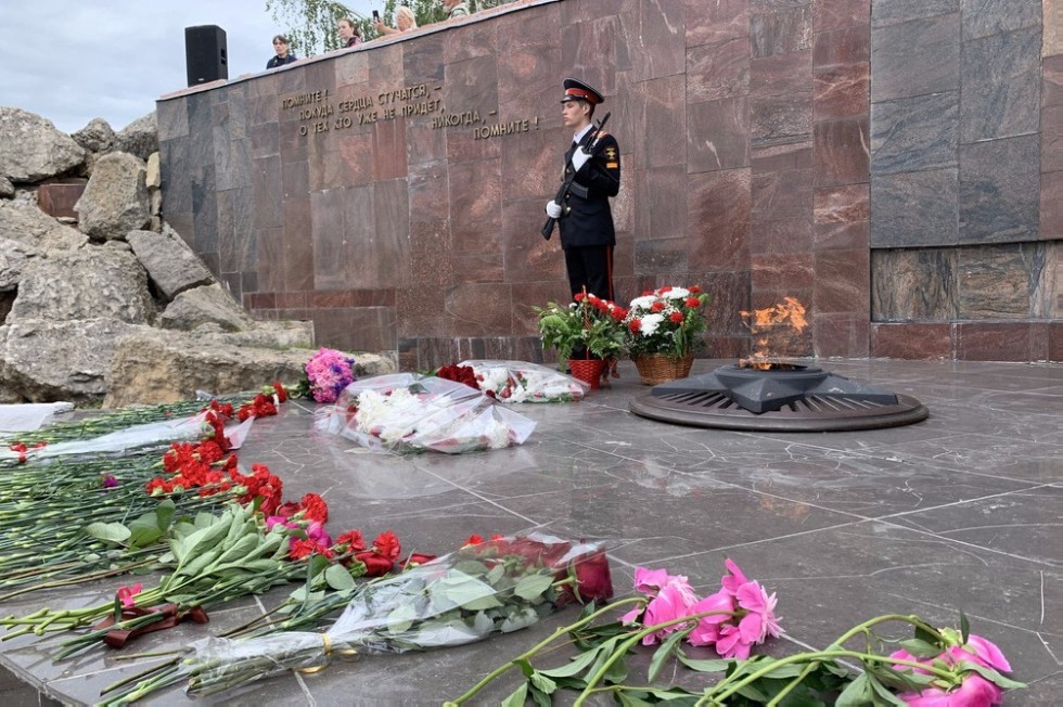 Сотрудники и студенты ЕИ КФУ приняли участие в городском митинге и возложении цветов к Вечному огню, общегосударственной акции «Минута молчания», а также присоединились к траурному шествию в память о погибших – «Вахте памяти».