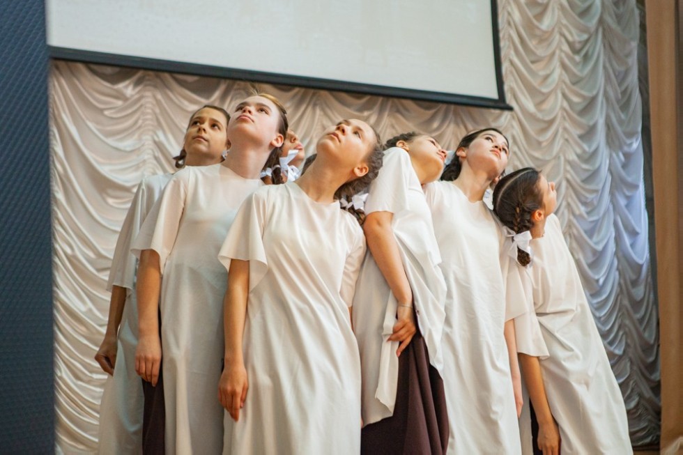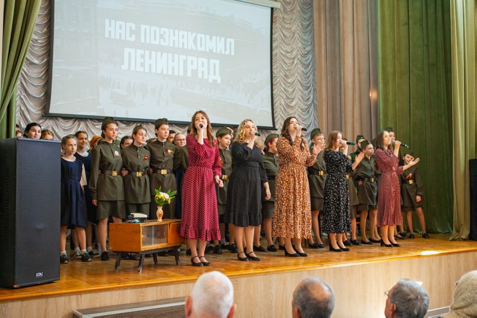 В качестве поздравления студенты представили ветеранам и гостям музыкально-театральную постановку «Нас познакомил Ленинград» по мотивам пьесы Алексея Арбузова «Мой бедный Марат». Это история о судьбах людей во время войны. Казалось бы, таких разных, но таких похожих. Развитие сюжета сменялось яркими творческими номерами, тематическими песнями и танцами от обучающихся Елабужского института и «Университетской» школы, что послужило великолепным украшением истории Лики, Марата, Леонидика и их друзей.