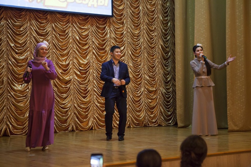 Последними выступили доцент кафедры татарской филологии Гузалия Ахмадгалива, старший лаборант кафедры татарской филологии Тамчыгуль Мухлисова и студент факультета филологии и истории Айнур Латыпов, которые добавили в концерт татарского колорита песней «Йор син».