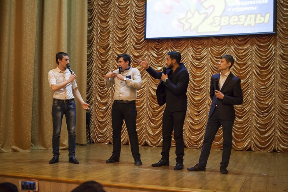 Несмотря на мороз за окнами, открывающий весну вечер оказался удивительно теплым для всех, кто собрался вечером в актовом зале Елабужского института КФУ – и для зрителей, и для участников традиционного творческого конкурса «Две звезды». В очередной раз на сцене слаженными дуэтами выступали студенты и их «наставники», защищая честь своих факультетов.