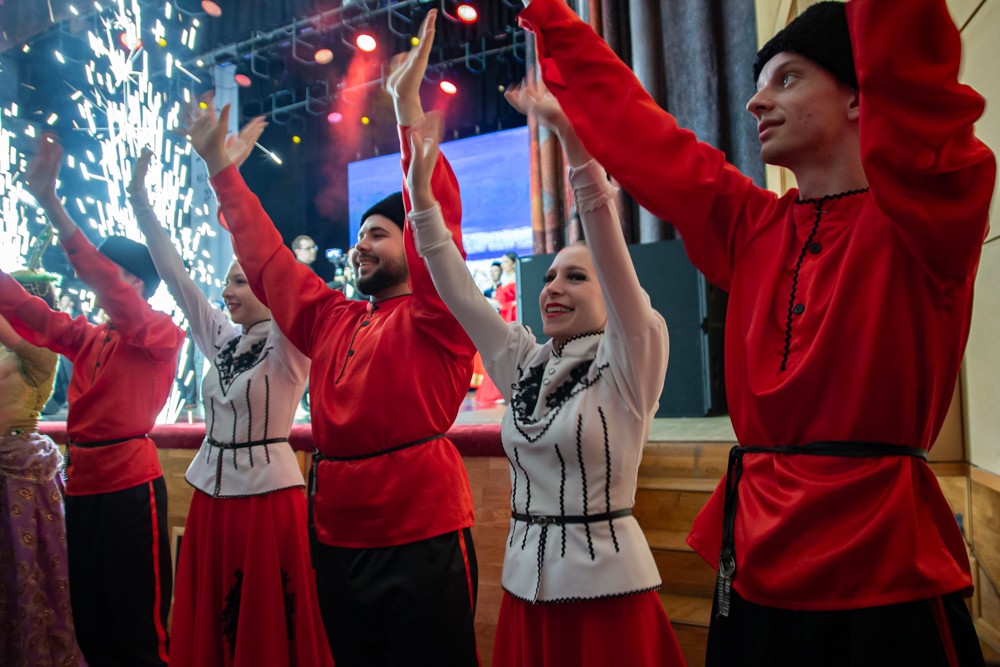 Завершился «День культуры» концертом с номерами творческих коллективов Елабуги, победителей конкурса «Алабуга-Арт». В их числе и студенты Елабужского института - танцевальный коллектив «Ялкын». Танцоры появились на сцене в ярких казачьих костюмах и исполнили народный танец «Казачий пляс».