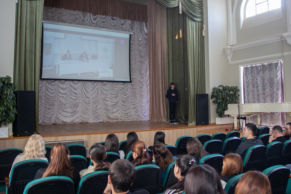 Вопросы дисциплины, соблюдения законодательства продолжил Тимирхан Алишев. Отдельно он остановился на законе «Об образовании», который гласит, что студент обязан посещать занятия. Кроме того, он рассказал ребятам о том, как не стать жертвами мошенников, призвал с осторожностью относиться к подозрительным предложениям о работе.
