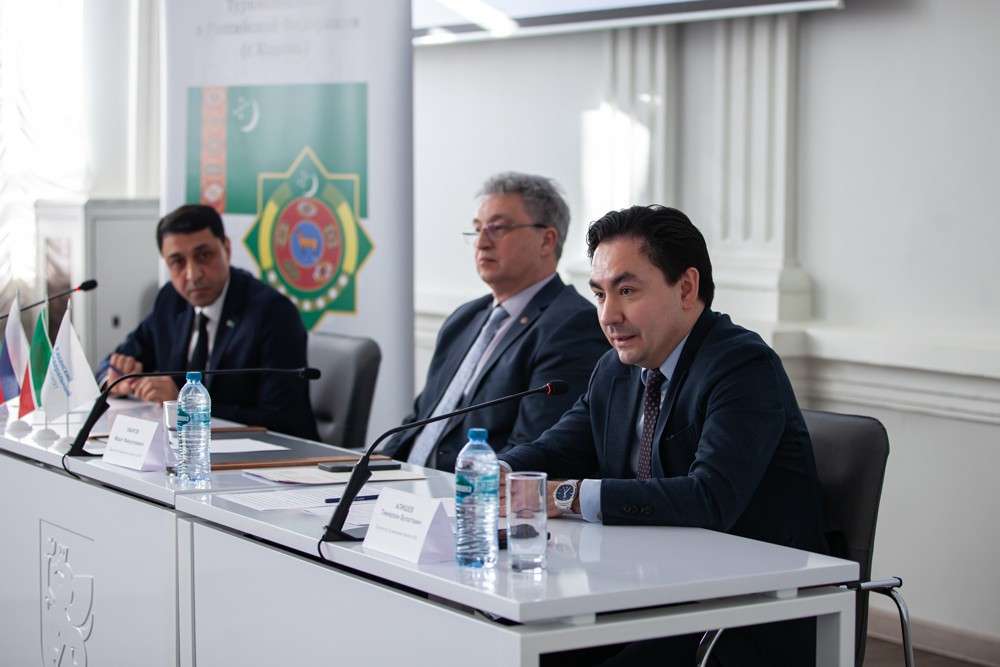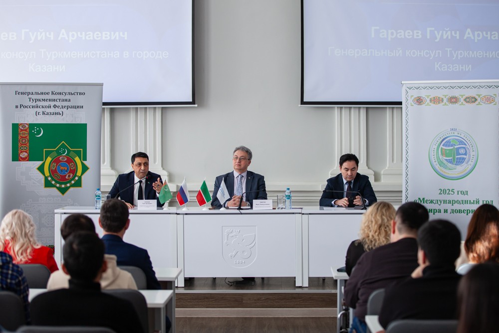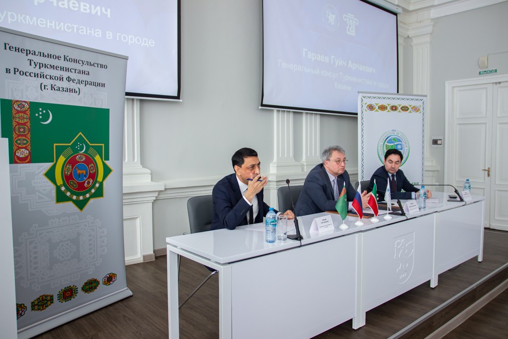 Стоит отметить, что во время мероприятия за спиной у почетных гостей были установлены стенды: один генерального Консульства Туркменистана, на втором значился девиз, под которым в стране пройдет наступивший год − «Международный год мира и доверия», в который особое внимание будет уделяться международным отношениям. Во время беседы со студентами не раз прозвучала мысль о том, что находясь в другой стране, следует помнить о Родине.