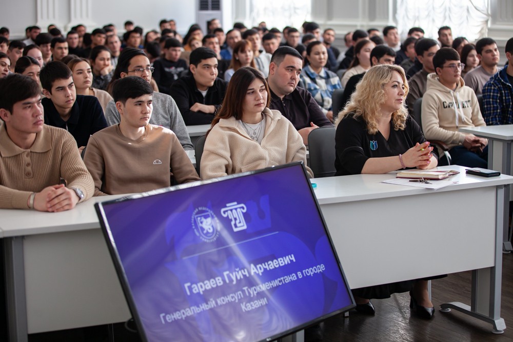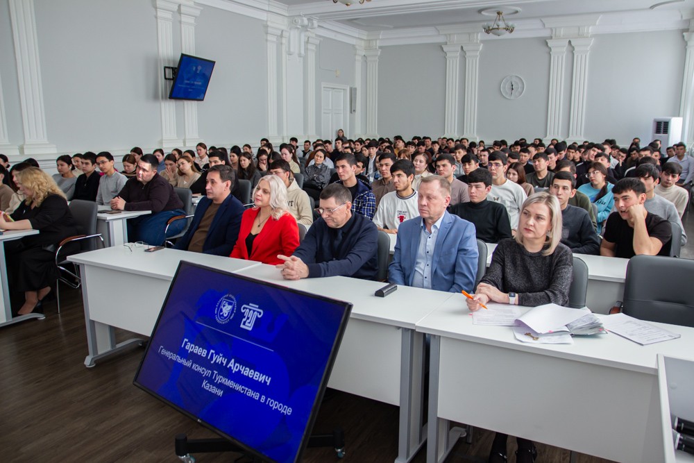 Основной целью их визита стала встреча со студентами института, приехавшими сюда учиться из Туркменистана, они, к слову, составляют значительную часть иностранных обучающихся вуза. Из Туркмении в Елабужском институте сегодня обучается порядка 1025 человек. Встреча состоялась в самой большой аудитории института, однако, она не вместила всех желающих лично пообщаться с почетным соотечественником, ребята заполнили и актовый зал, где для них была организована трансляция встречи.