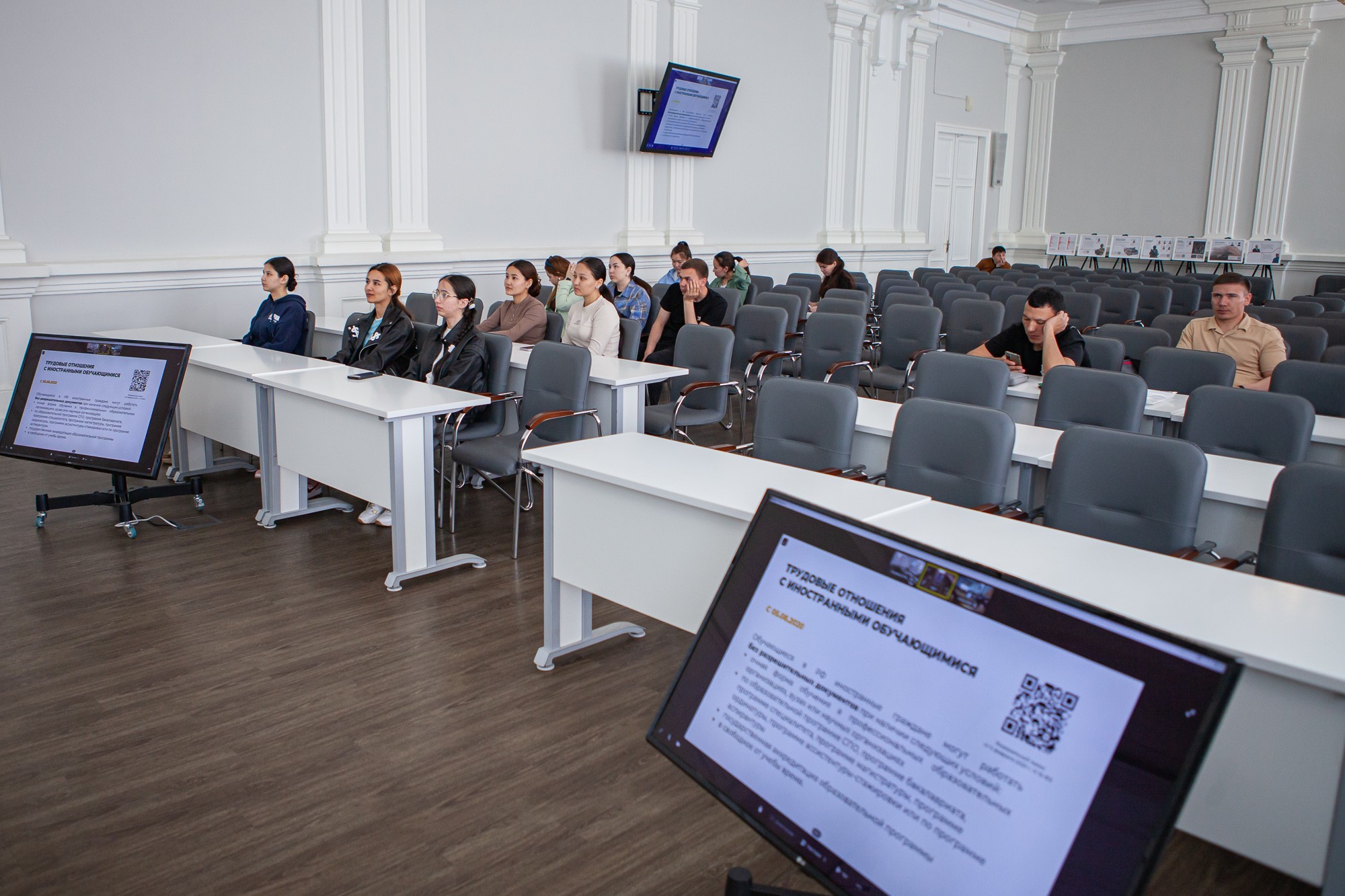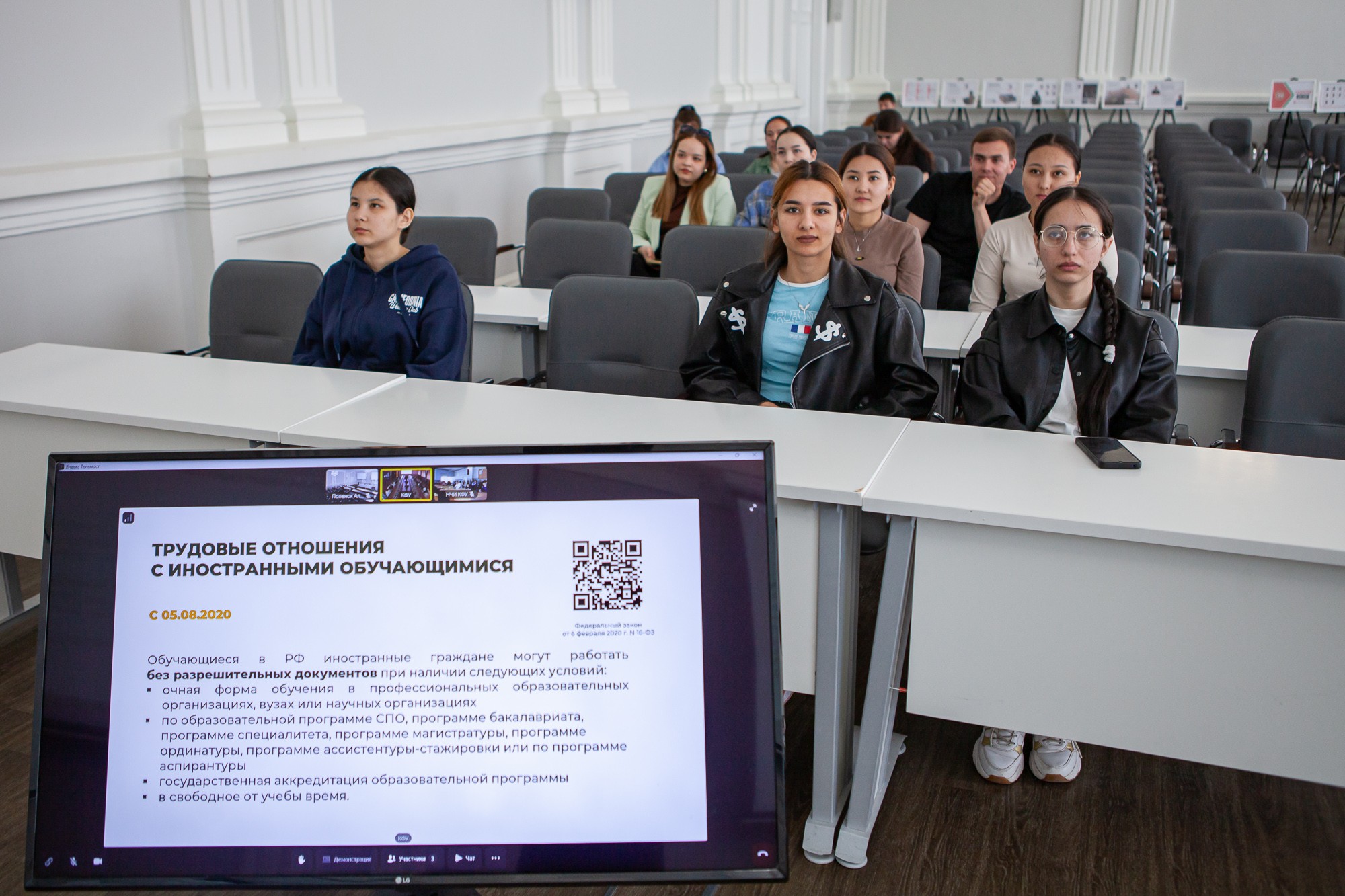 В зале Попечительского совета Казанского университета состоялся круглый стол по вопросам миграционного законодательства и трудоустройства иностранных обучающихся в Российской Федерации. Организатором встречи выступил Департамент внешних связей КФУ.