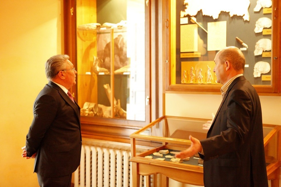 После участия в официальной части Международных Махмутовских чтений, Рафис Бурганов продолжил осмотр – на этот раз аудиторий и лабораторий главного здания Елабужского института КФУ. Он побывал в научно-образовательном комплексе вуза, включающем аудиторию имени Мирзы Махмутова и лабораторию проблемно-ориентированного образования, где представлены личные вещи и труды этого знаменитого ученого; зашел в музей истории вуза, где ему рассказали о методах обучения епархиалок, некогда учившихся в этих стенах. Также он посетил кабинеты криминалистики, физики и ряд других аудиторий, лично убедившись, что все они оснащены самым современным учебным оборудованием для подготовки квалифицированных специалистов. Директор Елабужского института КФУ Елена Мерзон рассказала министру о том, что в вузе постоянно модернизируются образовательные программы не только для студентов, но и для школьных учителей, проходящих курсы повышения квалификации в стенах вуза.