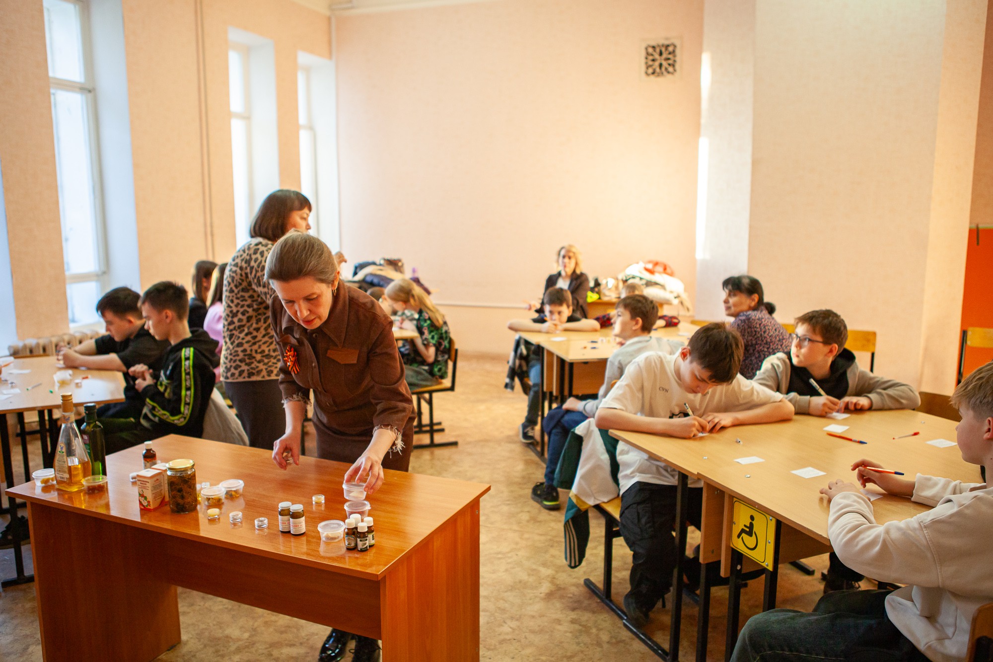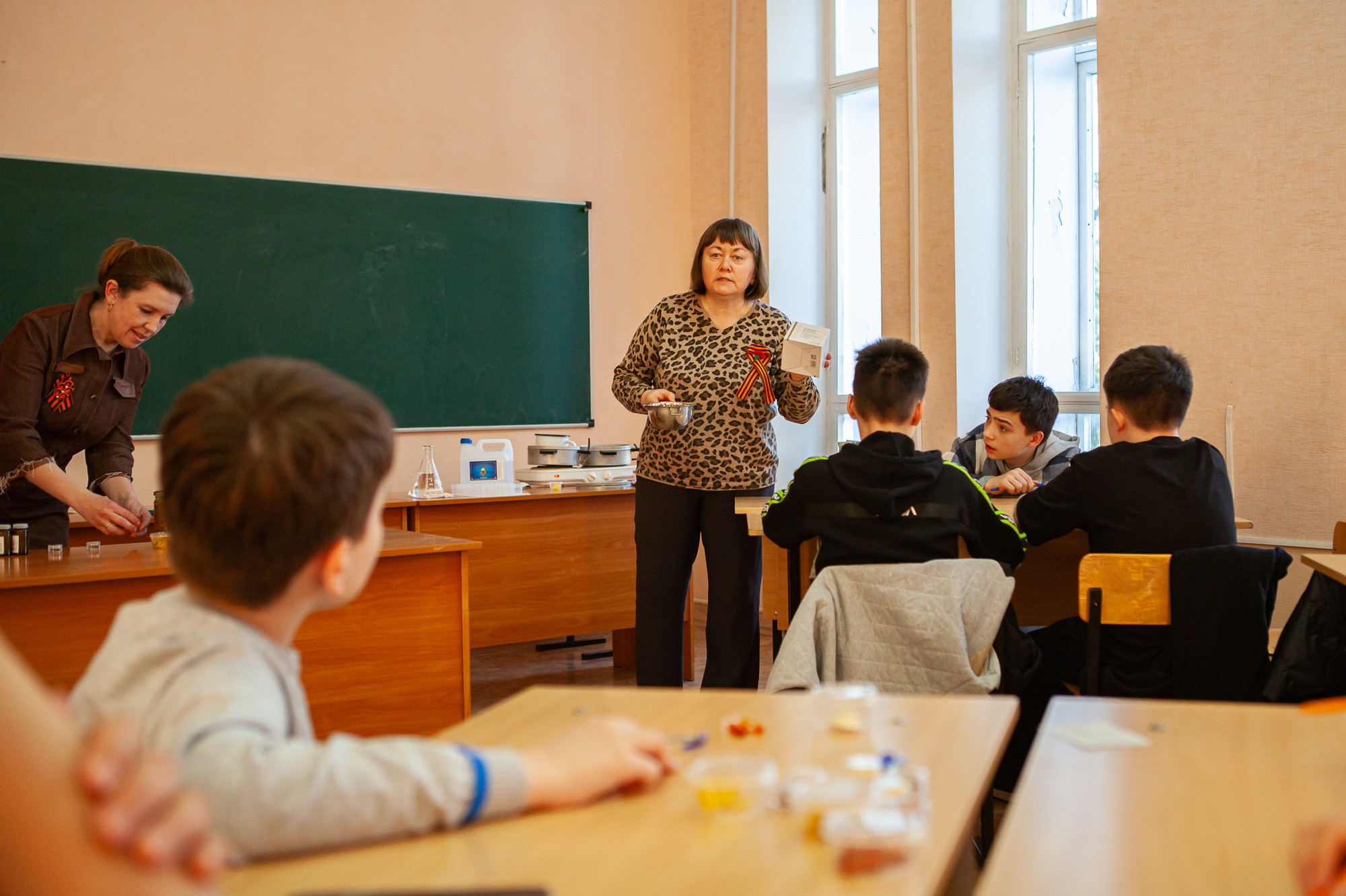 Не менее интересной стала лаборатория фармацевтической направленности, где были представлены мастер-классы по созданию ранозаживляющих мазей, использовавшихся в военное время. Участники не только познакомились с составами и технологиями приготовления лекарств, но и смогли поучаствовать в процессе создания мазей.
