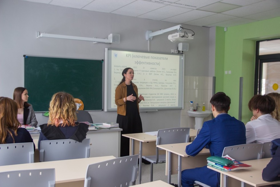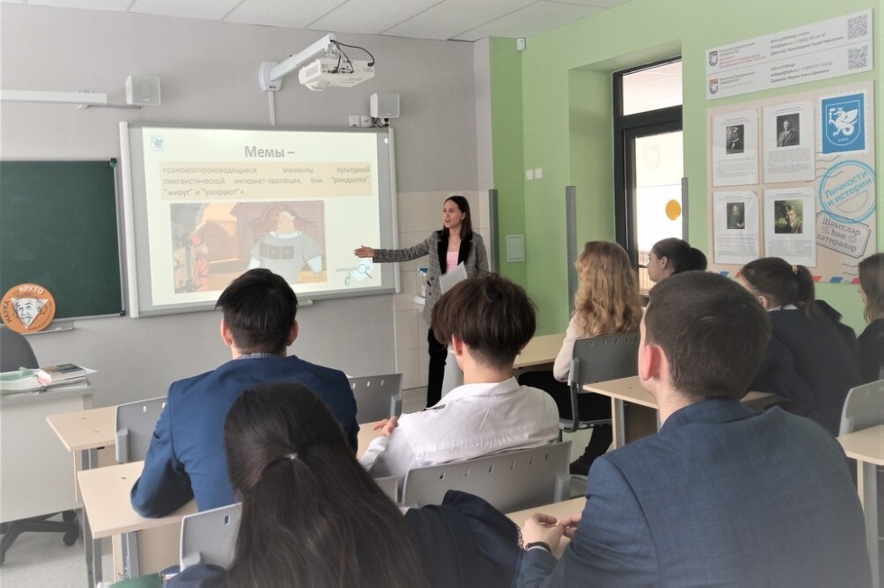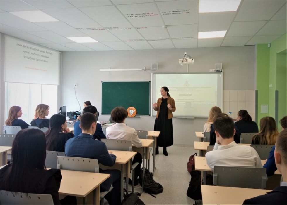 8 февраля 2022 года членами студенческого научного кружка «LINGUAСКОП» и его научным руководителем к.ф.н. доц. кафедры русского языка и литературы Ю.Ю. Даниловой была проведена встреча с учащимися 11-го класса Университетской школы.