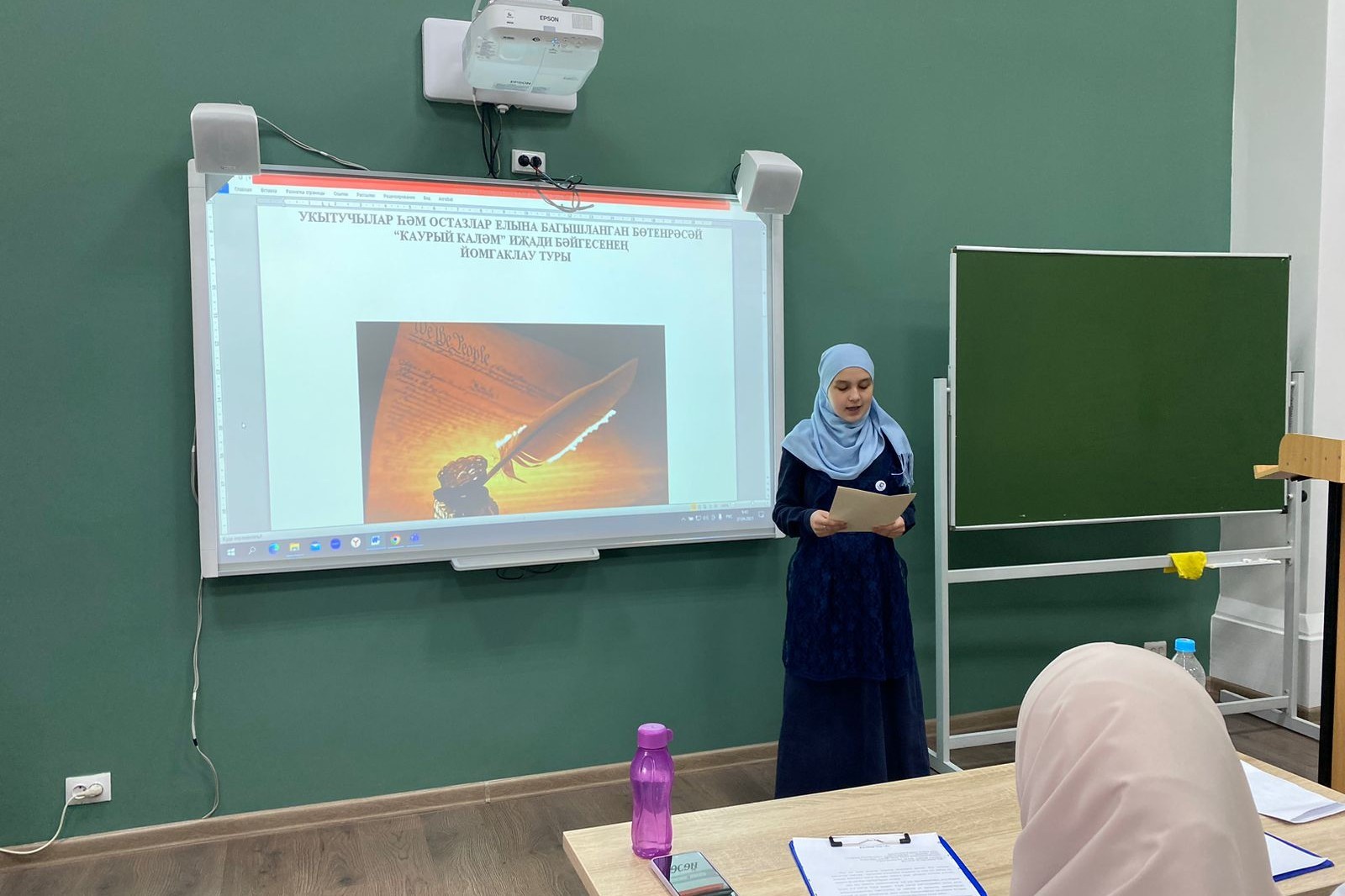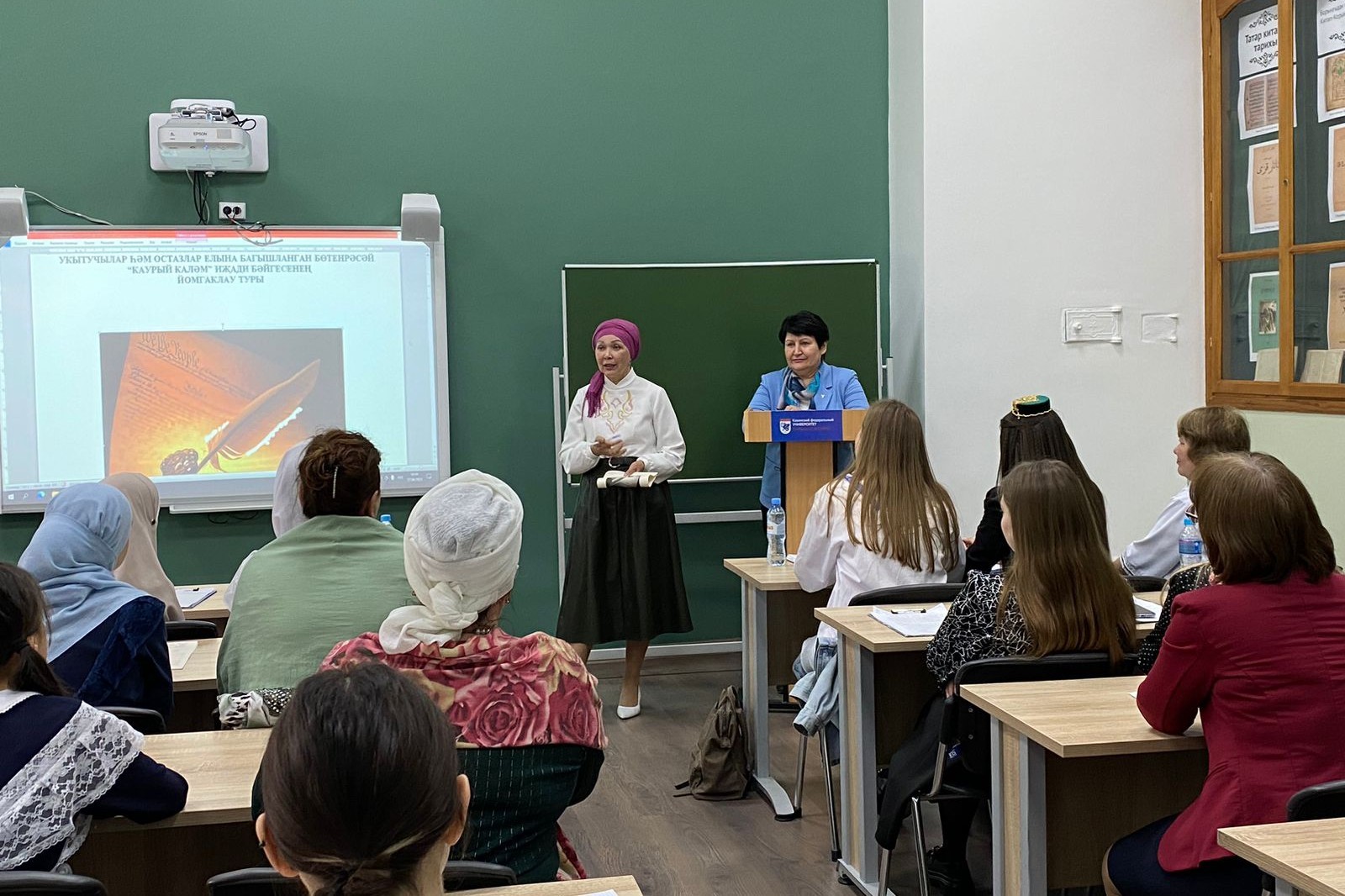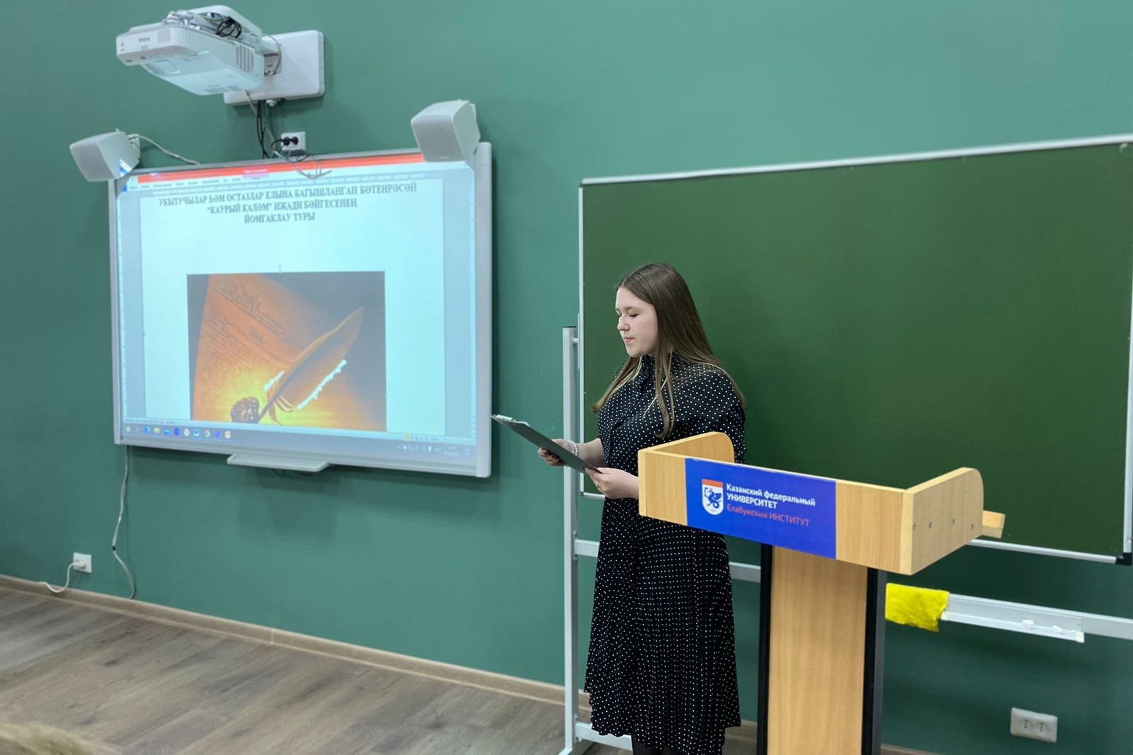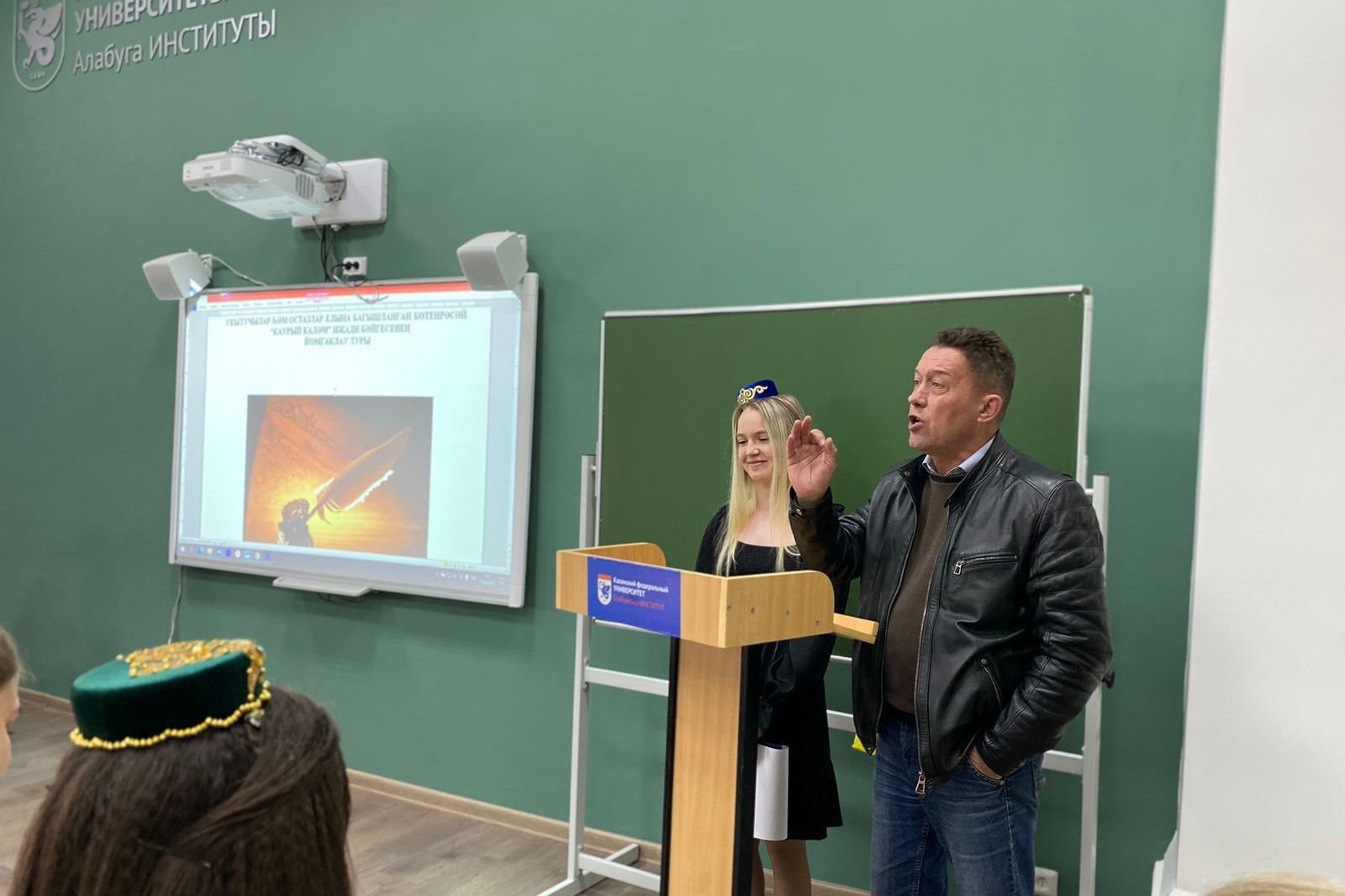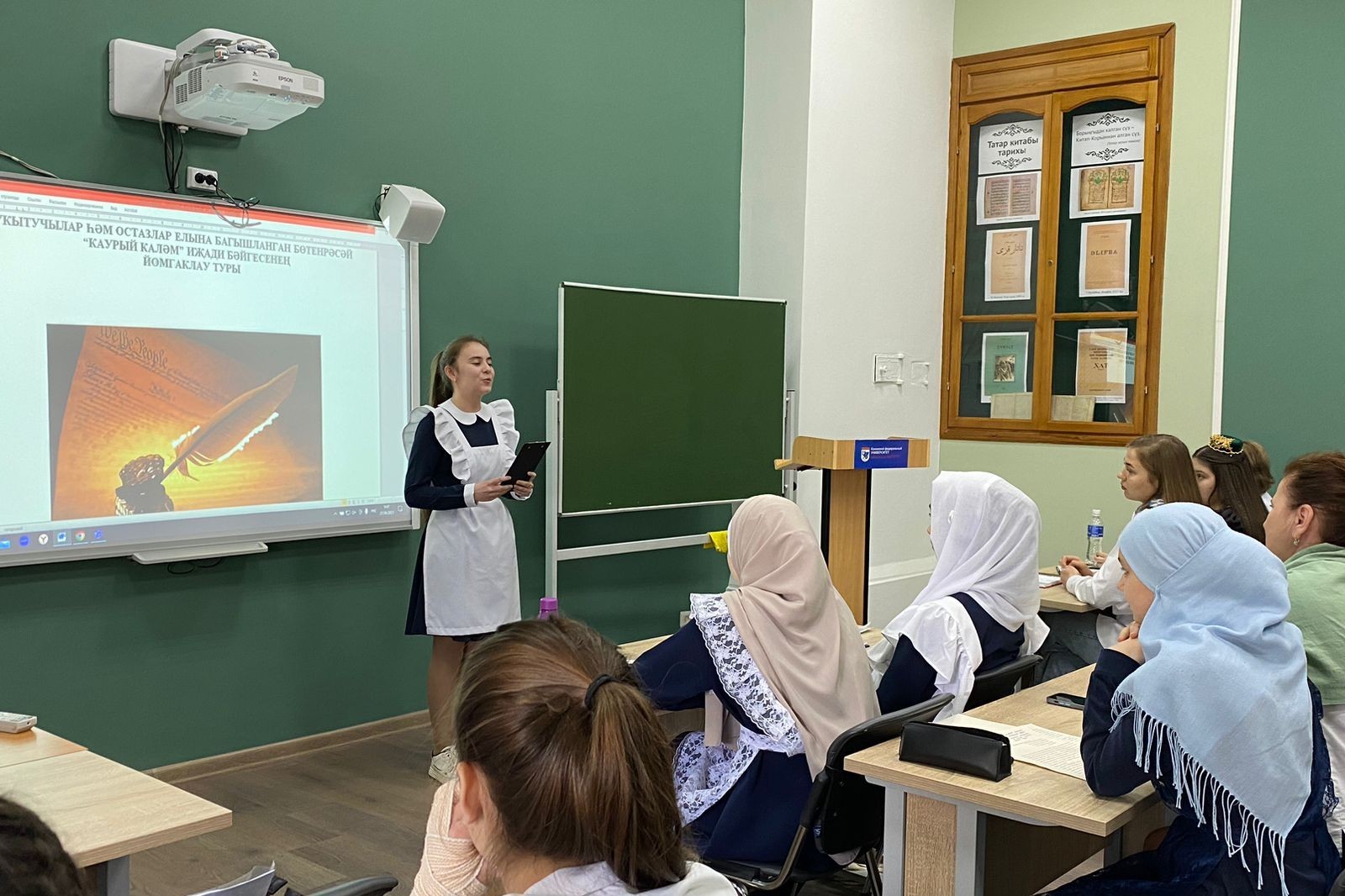 27 апреля при кафедре татарской филологии прошел Всероссийский творческий конкурс обучающихся «Каурый каләм», посвященный Году педагога и наставника. Участниками стали обучающиеся средних и старших классов, а также студенты Елабужского института КФУ кафедры татарской филологии.