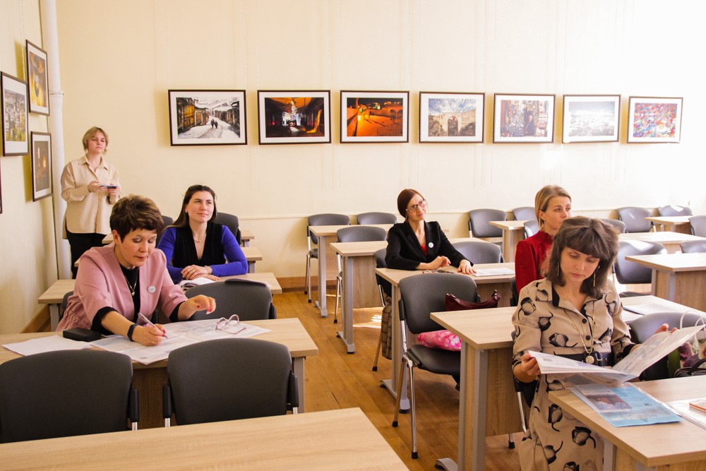 В завершение встречи Регина Васильева, выпускник 2012 года, учитель истории и обществознания МБОУ «Мелекесская средняя общеобразовательная школа с углубленным изучением отдельных предметов» Тукаевского муниципального района Республики Татарстан, представила мастер-класс на тему «Использование приемов формирования читательской грамотности на уроках истории», в рамках которой провела обзорное занятие «Первые киевские князья» в формате пресс-конференции.