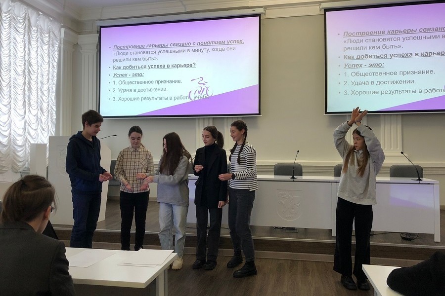 В ходе занятия Гузалия Расиховна рассказала о факторах, признаках, мотивах, которыми руководствуются старшеклассники при выборе профессии, а также о типичных ошибках, которые могут допустить молодые люди, выбирая профессию. Ученики активно и с большим интересом приняли участие в дискуссии, на которой обсуждались такие вопросы как: «Что такое понятие и цели карьеры?»; «Как добиться успеха в карьере?»; «Что стоит за понятием успех, от которого зависит карьера?»; «Каков образ жизни успешного человека?». «Какие наиболее значимые качества, характеризуют успешного в жизни человека?».Со старшеклассниками также были проведены ролевые игры, упражнения, направленные на формирование психологической готовности к обоснованному выбору профессии и развитие навыков планирования профессиональной карьеры. По результатам встречи ребятам удалось вывести «формулу успеха» и определитьфакторы, от которых зависит построение как профессиональной, так и личностной карьеры.