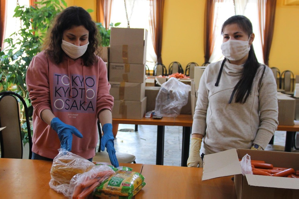 С инициативой оказания продовольственной помощи студентам, проживающим в общежитиях, вышел коллектив Елабужского института КФУ. В результате этого было собрано 1170 комплектов продуктовых наборов, которые включили в себя мясную, молочную продукции, хлебо-булочные и макаронные изделия, овощи.