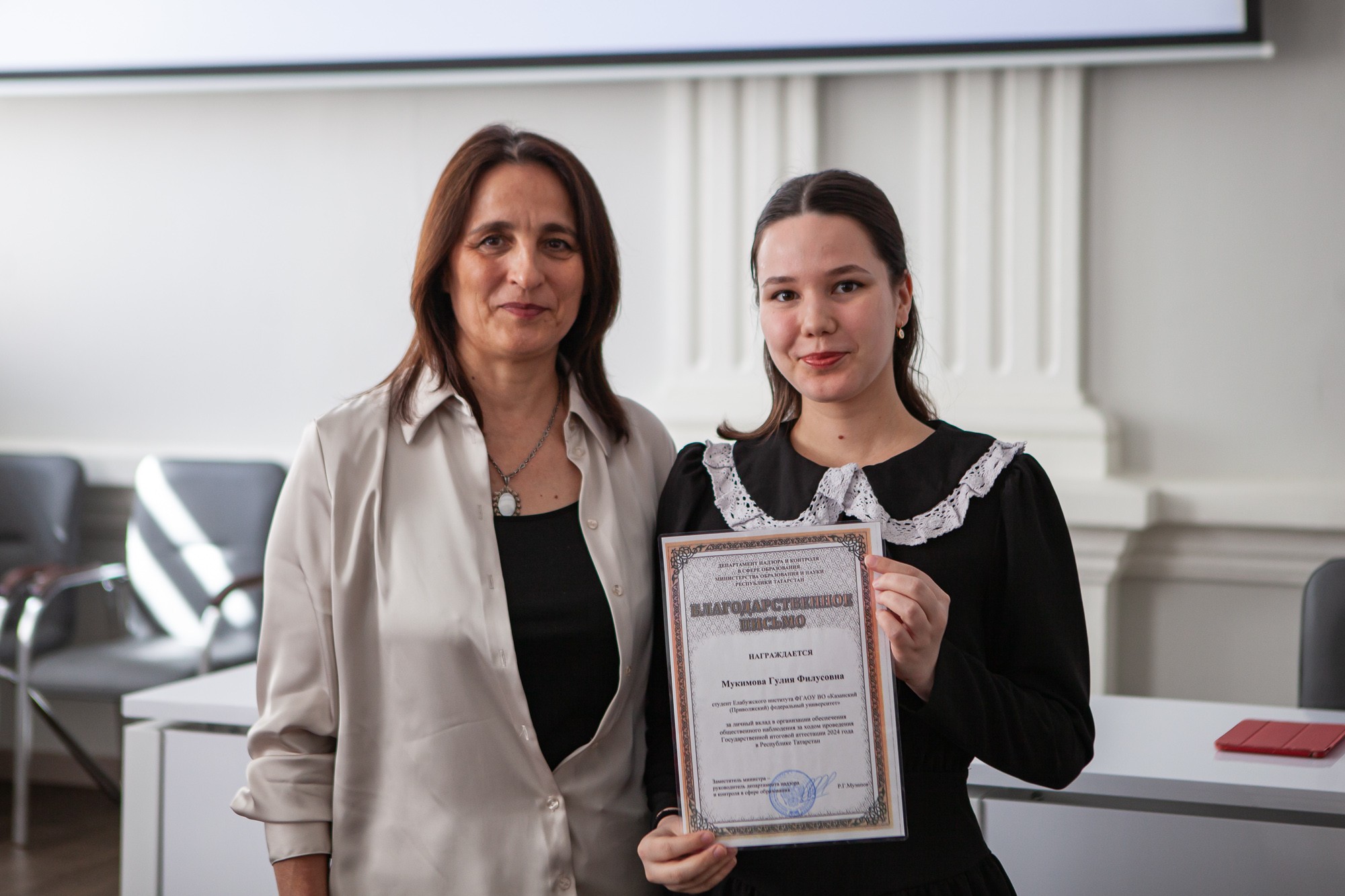 В рамках встречи студентов поблагодарили за личный вклад в организации обеспечения общественного наблюдения за ходом проведения ГИА в 2024 году в Республике Татарстан.