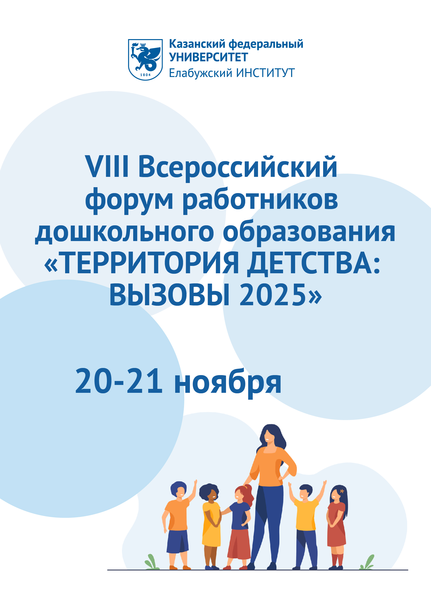 Форум состоится 20–21 ноября 2025г. на базе Елабужского института Казанского (Приволжского) федерального университета и предполагает участие ведущих российских специалистов в области дошкольного образования, экспертов в области развития образования, работников дошкольного образования, преподавателей и студентов вузов.