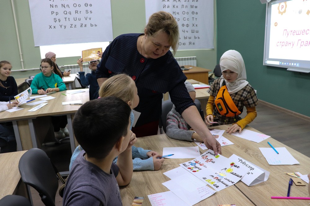 Юные почемучки на занятиях Детского университета смогли окунуться в грамматику на квест-игре «Путешествие в страну Грамматику», которую подготовила для них Альфира Хайруллина, доцент, кандидат филологических наук. Преподаватель с помощью элементов игры смогла заинтересовать детей изучением татарского языка: ребята решали кроссворды, вспомнили татарские слова, а некоторые из них смогли узнать много нового из грамматики родного языка.