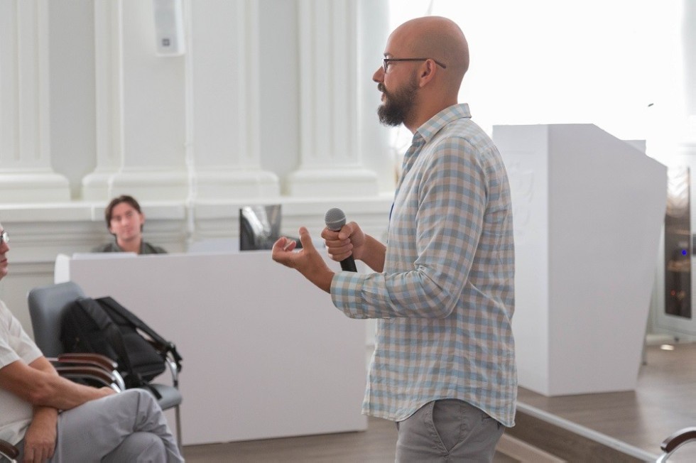 Дмитрий Омельченко, режиссер документального кино и социолог Центра Молодежных Исследований Национального исследовательского университета «Высшая школа экономики», поделился с участниками Фестиваля школьных учителей популярными техниками для успешной съёмки современного документального кино. Также в ходе беседы спикер раскрыл один из главных секретов успешного кино, который прозвучал так: «начинать процесс съёмки издалека».