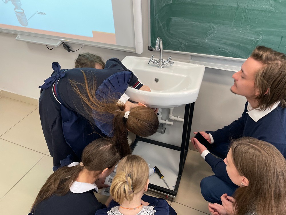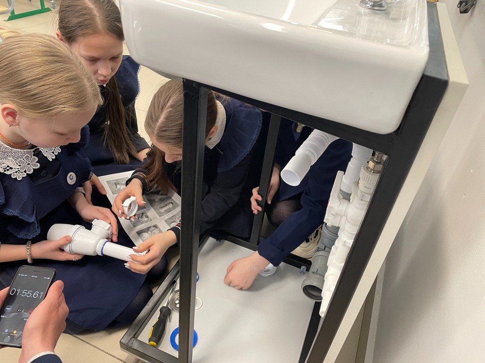 В ОШ «Университетская» проходят необычные уроки технологии: при реализации гендерного подхода в 5 классе при изучении модуля «Технологии ведения дома» даже девочки справились с задачей «Монтаж сантехнического оборудования». Для этого они изучили конструкцию, отличительные особенности сифонов и порядок их подключения к канализационной сети. На разработанном стенде в рамках выпускной квалификационной работы студентов инженерно-технологического отделения под руководством доцента Артема Исламова, были отработаны практические навыки по подключению раковины к канализации. Сборка конструкции на стенде выполнялась в виде соревновательного конкурса на время: лучший результат 5 мин 20 сек, что даже совсем не плохо для юных мастериц.