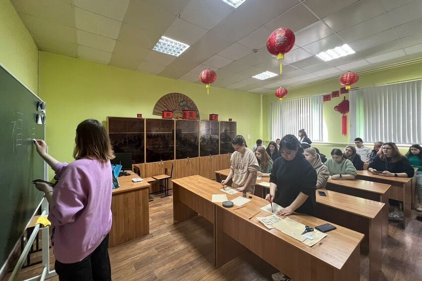 Также ребята попробовали себя в написании китайских иероглифов, мастер-класс проходил в соседней аудитории. Многие просили написать свои имена и спрашивали о значениях каждого иероглифа в своем имени.