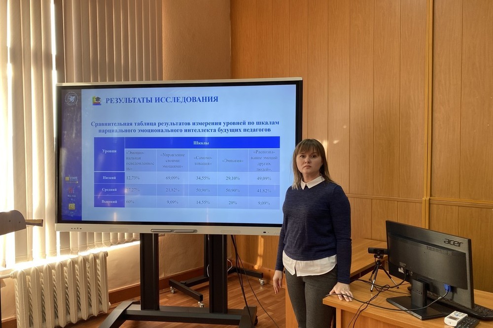 С результатами своего исследования «Эмоциональный интеллект будущего учителя как предиктор повышения его личной резильентности», проведенного с коллегами И.А. Талышевой и Л.Р. Халиуллиной, познакомила присутствующих доцент Наиля Асхадуллина. Она представила данные экспериментальной работы по оценке различных составляющих эмоционального интеллекта студентов 2 и 3 курса Елабужского института КФУ.