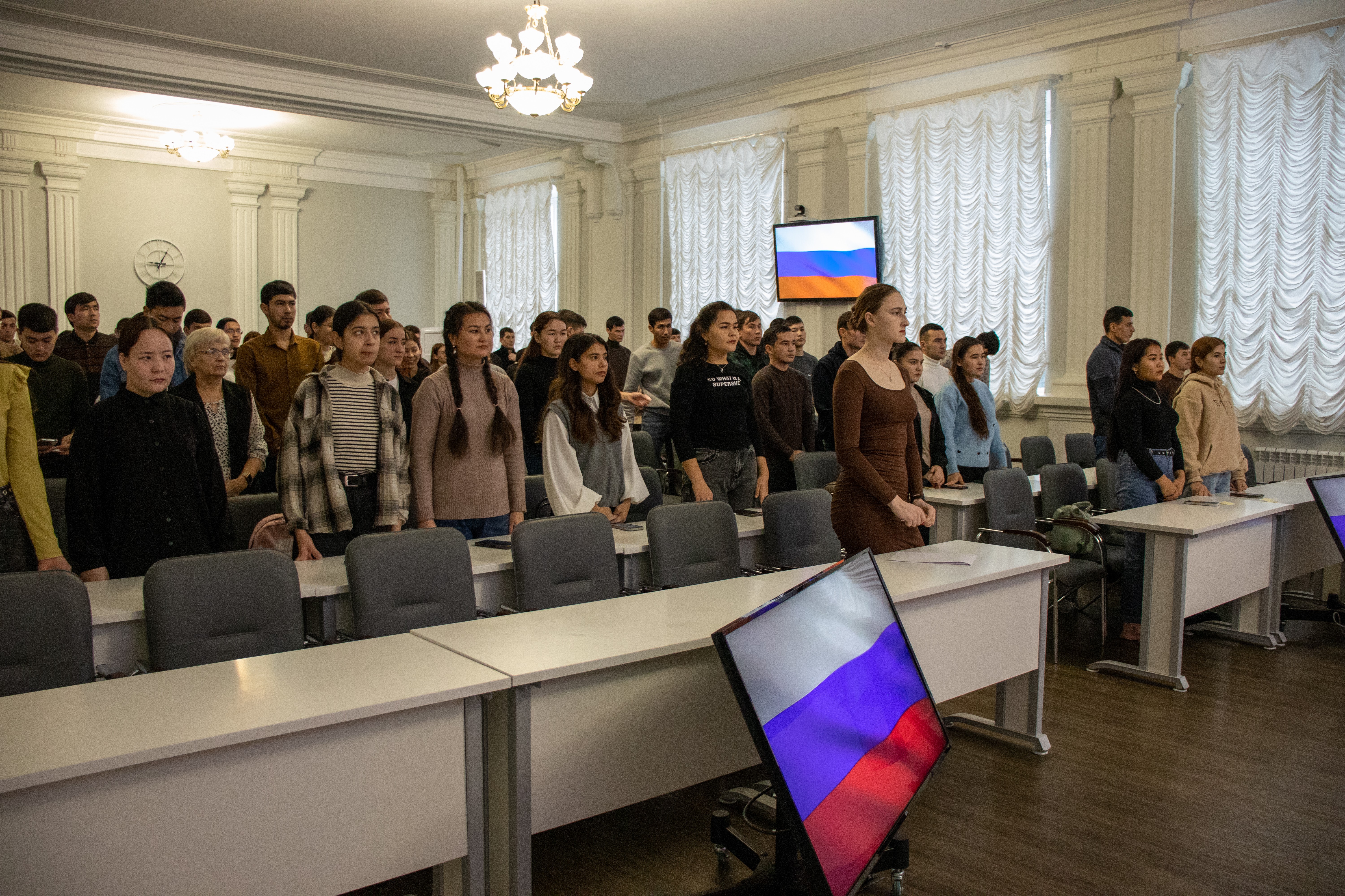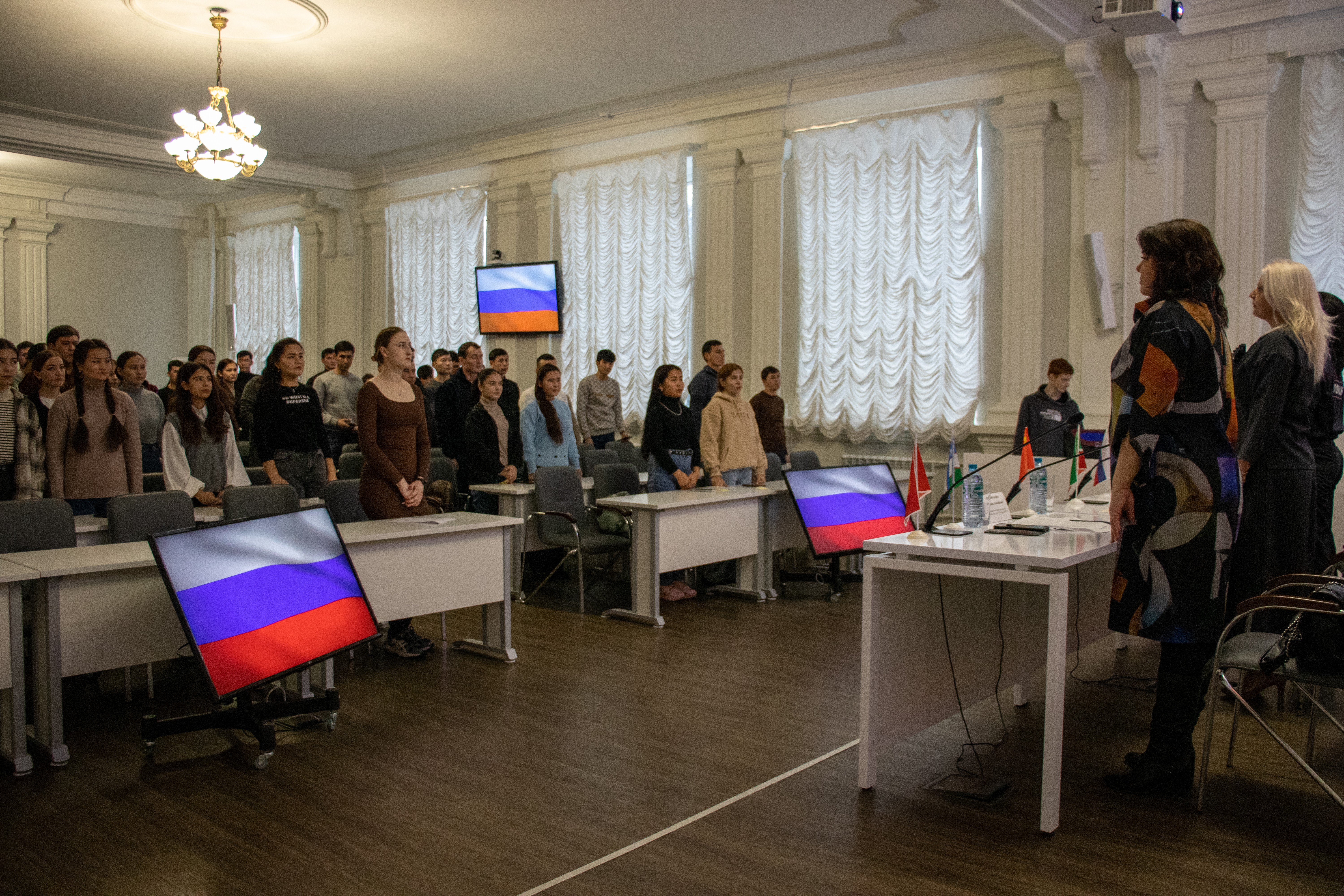 Традиционно встреча началась с прослушивания гимнов Российской Федерации, Республики Татарстан и Казанского университета. После чего каждый из присутствующих прошёл небольшое ознакомительное тестирование.