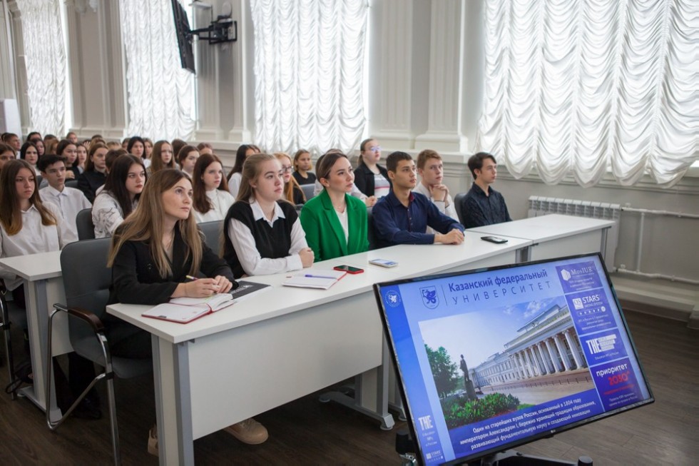 «Я думаю, что понимание того, сколько направлений и возможностей имеется в КФУ, для Вас тоже поспособствует пониманию своего будущего, потому что очень быстро время пройдет, и Вы уже окажитесь на пороге понимания, что Вам придется выбирать следующую ступень обучения», - сказала директор, подчеркивая богатую инфраструктуру университета, в которую вошли 18 институтов, 3 школы, специализированный детский сад и колледж Елабужского института, на который возлагаются большие надежды.