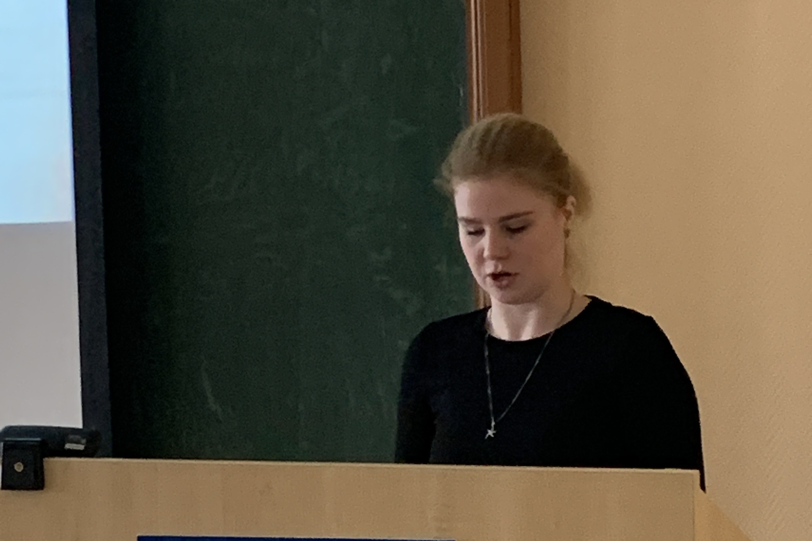 В рамках данной акции и работы студенческого научного кружка прошла лекция-дискуссия "Повышение результативности изучения иностранных языков», участниками были студенты группы 1413, 2412, 2413 и колледжа Елабужского института КФУ. Руководитель кружка «Изучение иностранных языков: возможности и барьеры» Панфилова В.М. представила слушателям информацию об иностранных языках, о языковых семьях, наиболее распространенных, исчезающих и мертвых языках, языках ООН и т.д. Особый интерес вызвал рассказ о полиглотах, о количестве иностранных языков, на которых они говорят, общаются. И у тех, кто изучал или изучает иностранные языки, возникает вопрос, почему существует проблема с общением, говорением, после многих лет изучения иностранных языков в школе, вузе. Как повысить результативность изучения иностранных языков? Участники дискуссии попытались найти ответ на данный вопрос. Бесова Ангелина (гр. 1413) рассказала о клише как эффективном средстве изучения иностранных языков, Садриева Индира (гр. 1413) о том, как изучение иностранных языков влияет на когнитивные способности человека, Михайлова Наталья предложила для обсуждения проблему возникновения психологических барьеров говорения на иностранном языке. В дискуссии принимали участие студенты первого курса и колледжа.