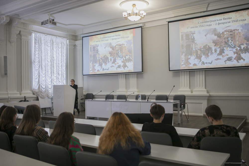 В Елабужском институте КФУ состоялась открытая лекция для учеников «Университетской» школы и студентов Колледжа ЕИ КФУ, посвященная 80-й годовщине победы Красной армии над вермахтом в Сталинградской битве. Спикером стала доцент кафедры всеобщей истории Галлямова Земфира Виленовна: