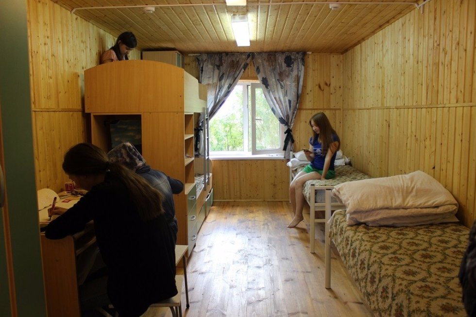8 жилых корпусов на 152 койко-мест, в том числе 2 домика для преподавателей и персонала на 24 койко-мест: