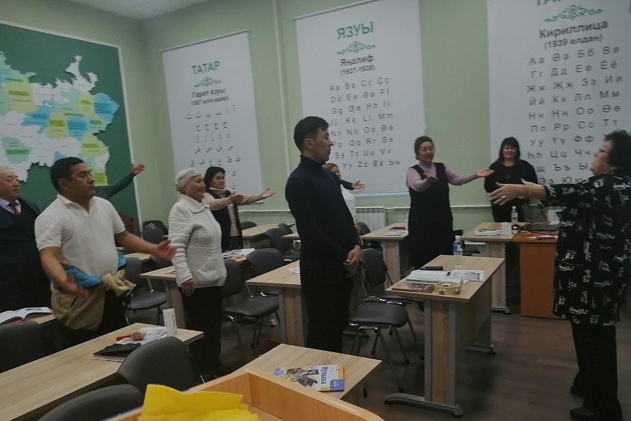 Разия Гуламджановна дала гостям отличный мастер-класс. Вспомнили все детские песни, музыкально-танцевальные игры. Даже спели на татарском языке песню «Зəкəрия-Кəрия». Так, Разия Гулумджановна только начала петь, а гости уже подхватили, стали петь всем коллективом, как будто давно ее знают и регулярно поют.