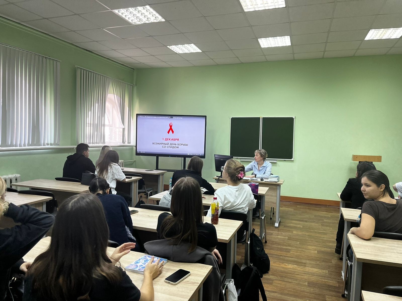 В течение недели на отделении иностранных языков прошли тематические кураторские часы, приуроченные ко Всемирному дню борьбы со СПИдом, который отмечается 2 декабря. В группах состоялись беседы о природе СПИД/ ВИЧ, путях передачи инфекции, способах лечения с использованием презентационных и видеоматериалов. В ходе беседы обсуждалось также социальное положение ВИЧ-инфицированных. Посредством интерактивных форм взаимодействия студентами сформулировались правила профилактики заболеваний.