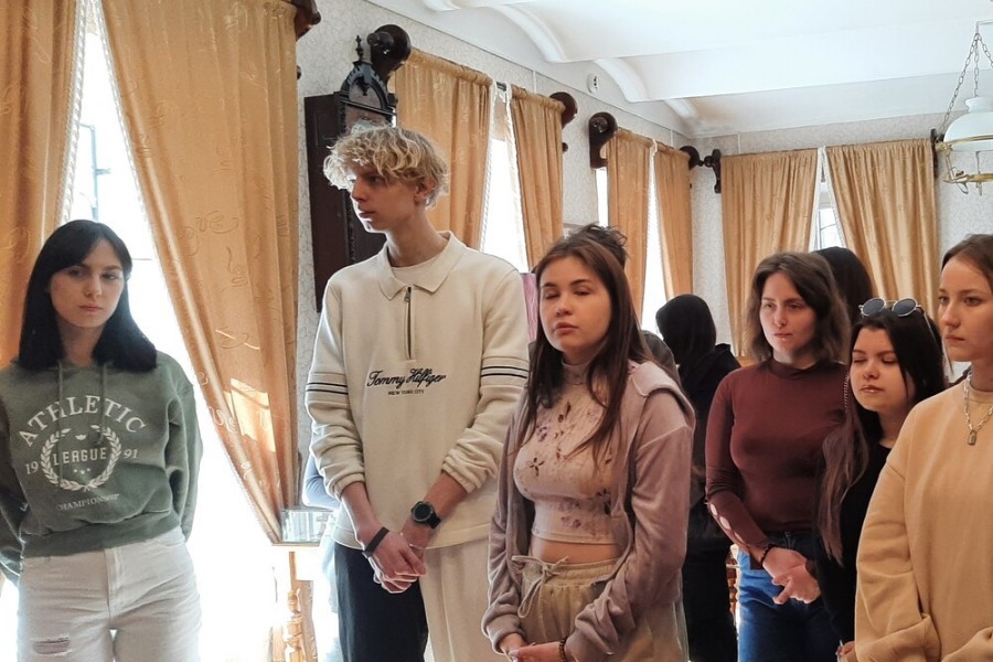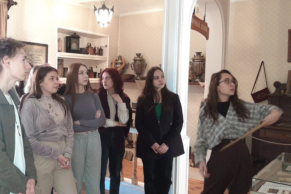 Кроме того, студентов познакомили с традициями купеческого быта. Самыми нарядными комнатами были столовая и гостиная, где купцы проводили вечера за музицированием, чтением книг, играми.