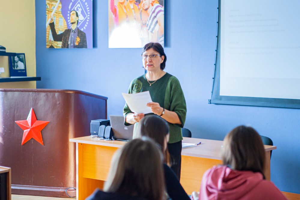Ежегодно все изучающие немецкий язык в стенах нашего института по инициативе преподавателей кафедры немецкой филологии (проф. Шастина Е.М., доц. Панфилова В.М., доц. Сибгатуллина А.А., доц. Трофимова Л.В., ст.преп. Барова А.Г., ст преп. Бородина Т.Ф.) участвуют в этой акции, целью которой является популяризация немецкого языка и немецкой культуры в нашей стране.