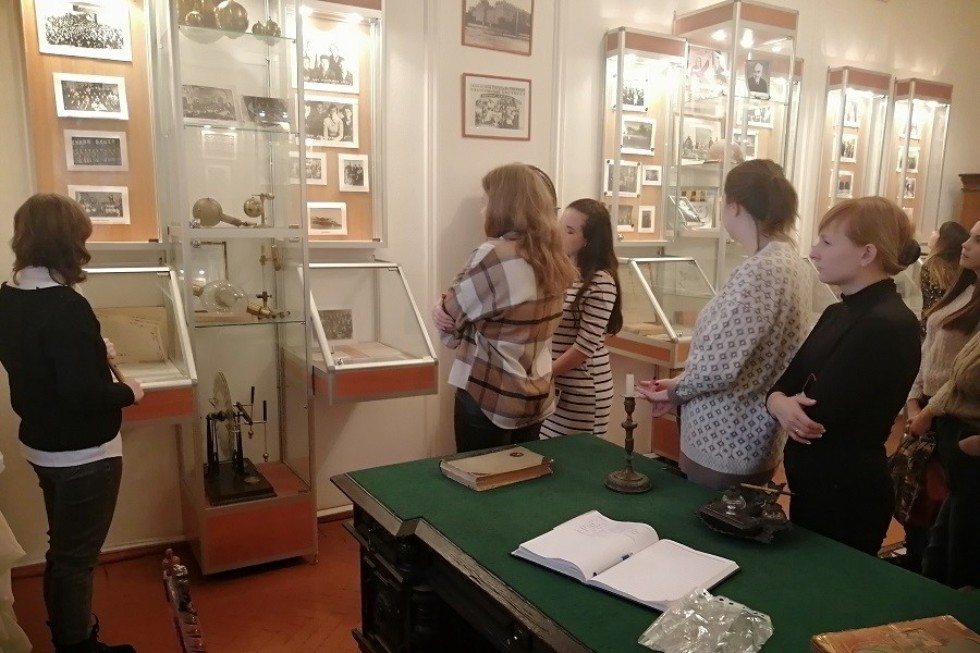 Экспозиция музея поражает: вниманию студентов было представлено много музейных предметов, в фотографиях, документах, макетах и моделях, отображающих различные этапы истории вуза.