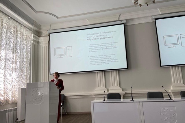 Лектор рассказала приемах и методах технологии эдьютейнмент, подчеркнула, что в процессе применения технологии важно создавать эмоционально-мотивационные условия, при которых образовательный процесс становиться событием, в ходе которого не только учитель, но и обучающиеся выступают в роли медиаторов и акторов процесса получения знаний.