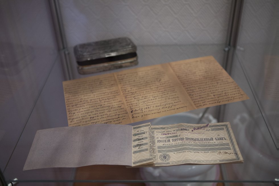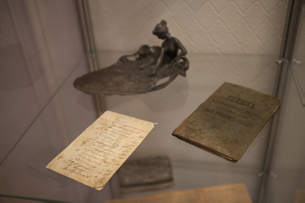 В первом разделе музейной экспозиции представлены фотографии благотворительницы Глафиры Федоровны Стахеевой, ее мужа Василия Григорьевича Стахеева и их детей. Экспозиция раскрывает деятельность Елабужского Епархиального женского училища (1898-1918).