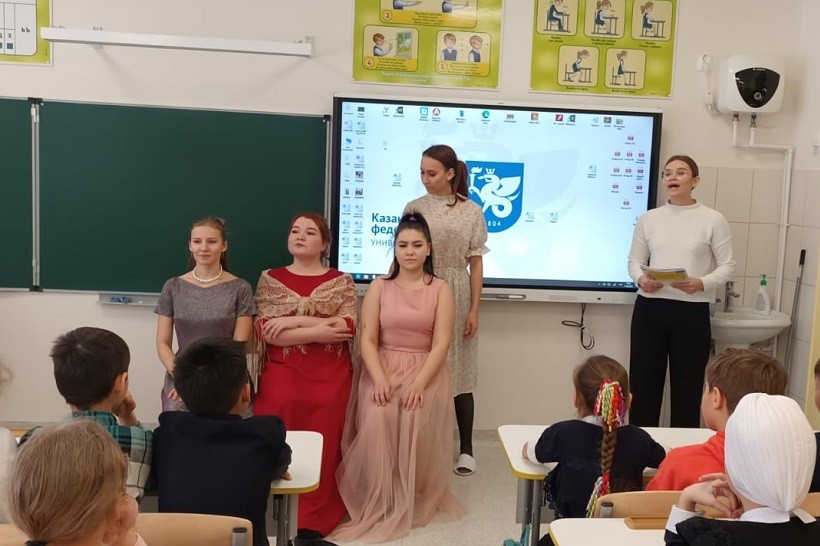 В рамках празднования Дня российской науки студенты 9412 группы 4 курса отделения психологии и педагогики под руководством доцента кафедры теории и методики дошкольного и начального образования Миннуллиной Р.Ф. провели интерактивное занятие по «Литературному чтению» с учащимися 2-х классов. В январе с этими же младшими школьниками было организовано занятие по теме «Делай добро», которое было подготовлено студентами 2412 группы 2 курса.