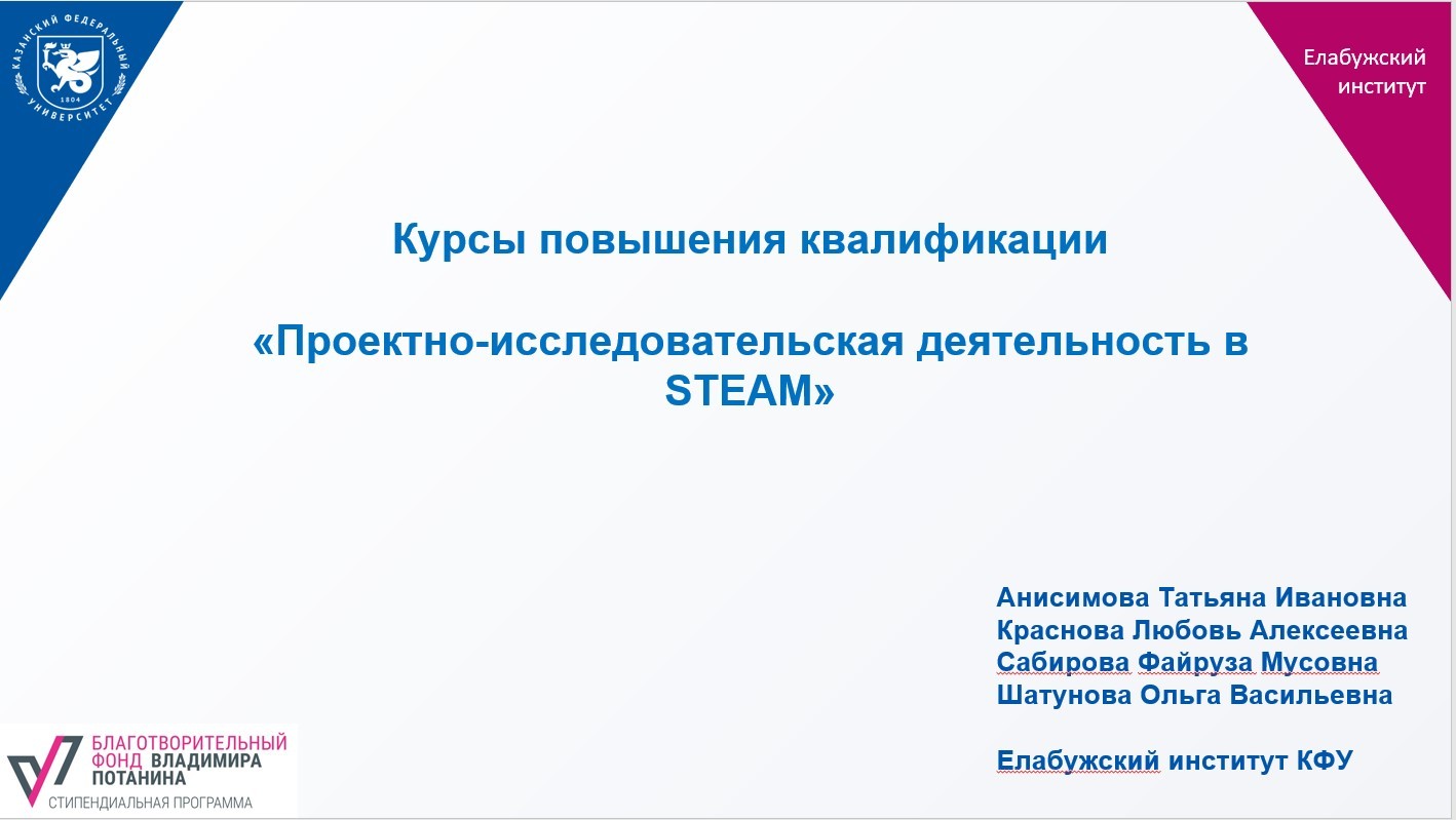 В рамках реализации гранта Владимира Потанина состоялись курсы повышения квалификации 'Проектно-исследовательская деятельность в STEAM' ,Елабужский институт КФУ