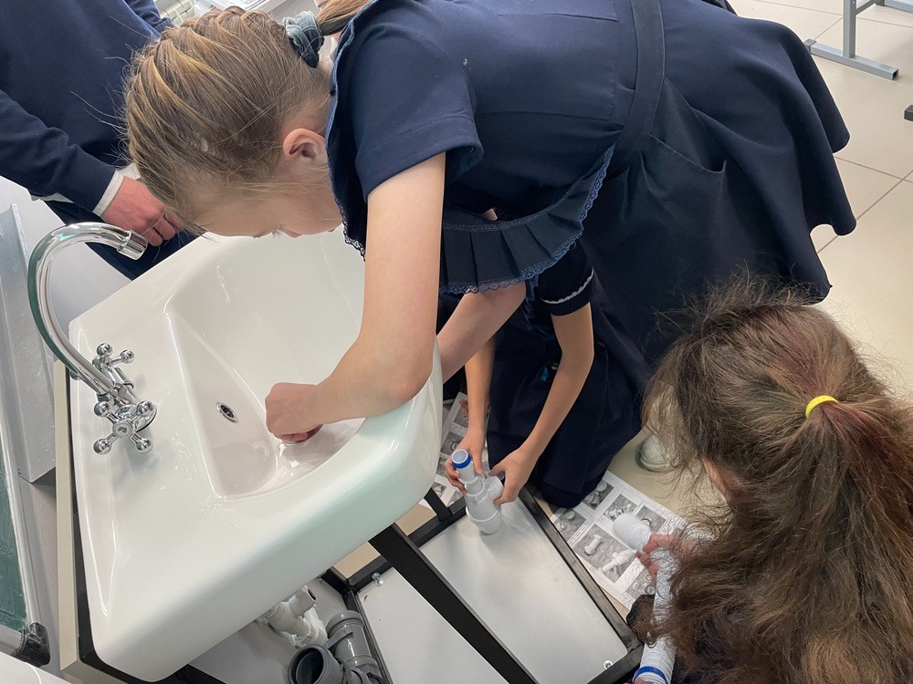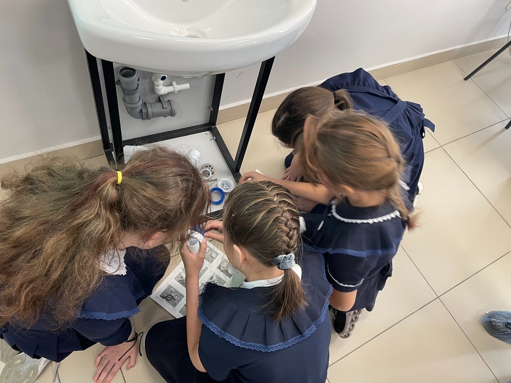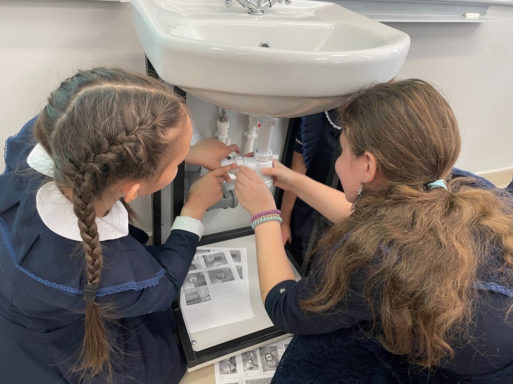 В ОШ «Университетская» проходят необычные уроки технологии: при реализации гендерного подхода в 5 классе при изучении модуля «Технологии ведения дома» даже девочки справились с задачей «Монтаж сантехнического оборудования». Для этого они изучили конструкцию, отличительные особенности сифонов и порядок их подключения к канализационной сети. На разработанном стенде в рамках выпускной квалификационной работы студентов инженерно-технологического отделения под руководством доцента Артема Исламова, были отработаны практические навыки по подключению раковины к канализации. Сборка конструкции на стенде выполнялась в виде соревновательного конкурса на время: лучший результат 5 мин 20 сек, что даже совсем не плохо для юных мастериц.