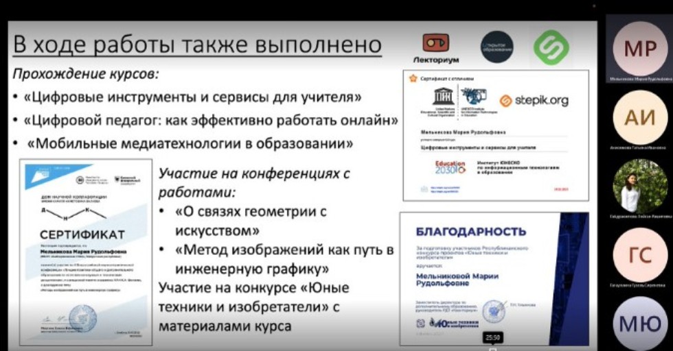 1 место – Мельникова М.Р. (гр. е0221з). Создание цифрового образовательного ресурса по геометрии для студентов бакалавриата. Научный руководитель – доцент, канд. физ.-мат. наук. Н.Н. Костина.