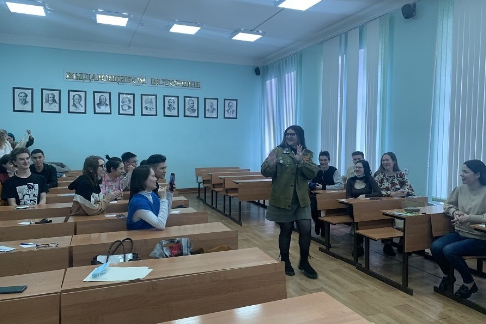 Студенты-историки погрузили участников мероприятия в советскую эпоху, посвятив выступления 100-летию образования Советского Союза. Алина Мингазова и Дарья Горбунова представили материал о музеях советского быта, которые действуют в настоящее время в Москве, Санкт-Петербурге и Казани, а также рассказали о предметах повседневности, которые уже вышли из нашего обихода. «Мы должны чтить и сохранять историко-культурное наследие СССР», - отметила Дарья Горбунова.
