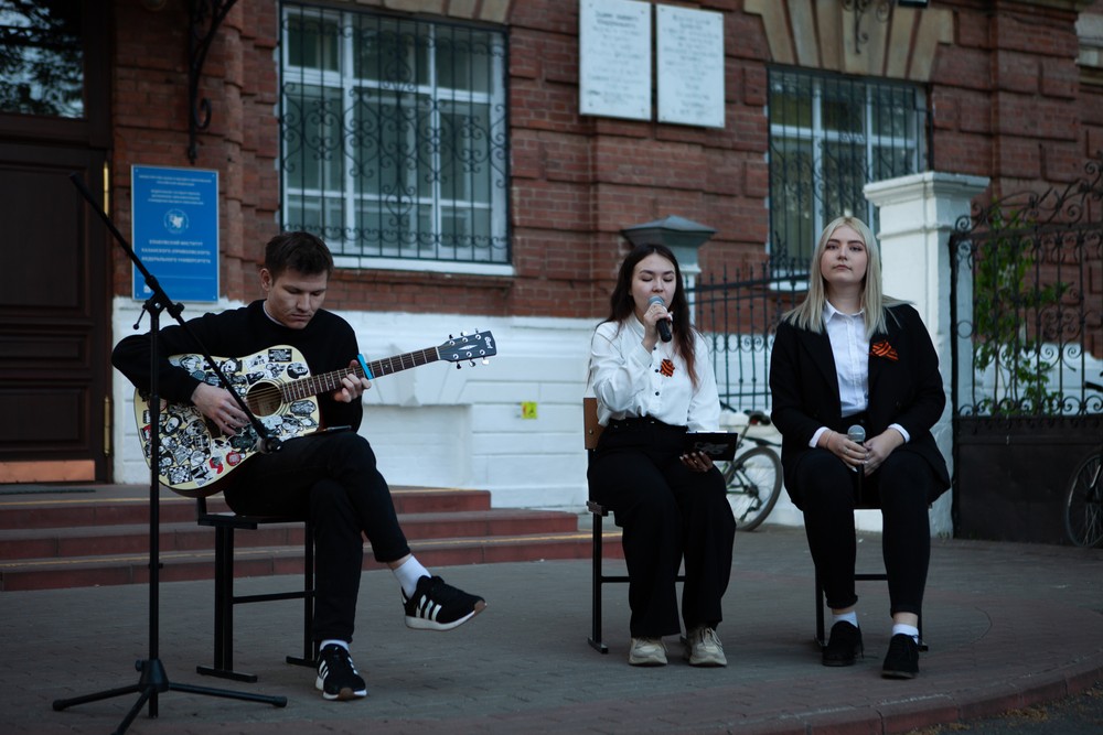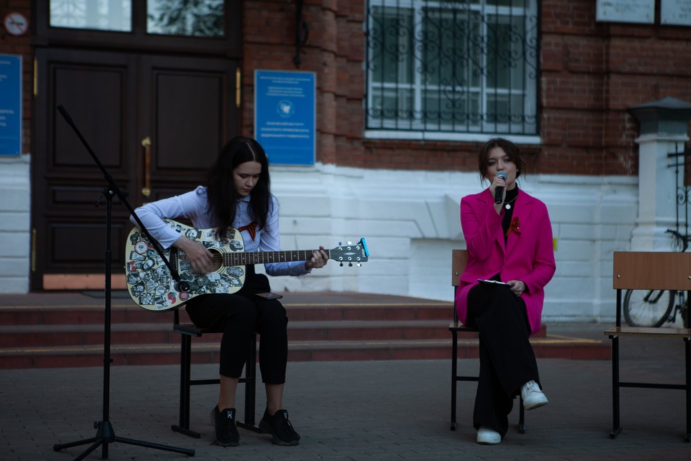 Гости мероприятия на сегодняшнем гитарном вечере могли услышать и пропеть строчки из любимых песен, а исполненные песни ребята посвятили нашим дедам, прадедам и Победе в Великой Отечественной войне. Как отметили сами студенты, строчки песен заставили задуматься о важности мира и благополучия на всей земле.