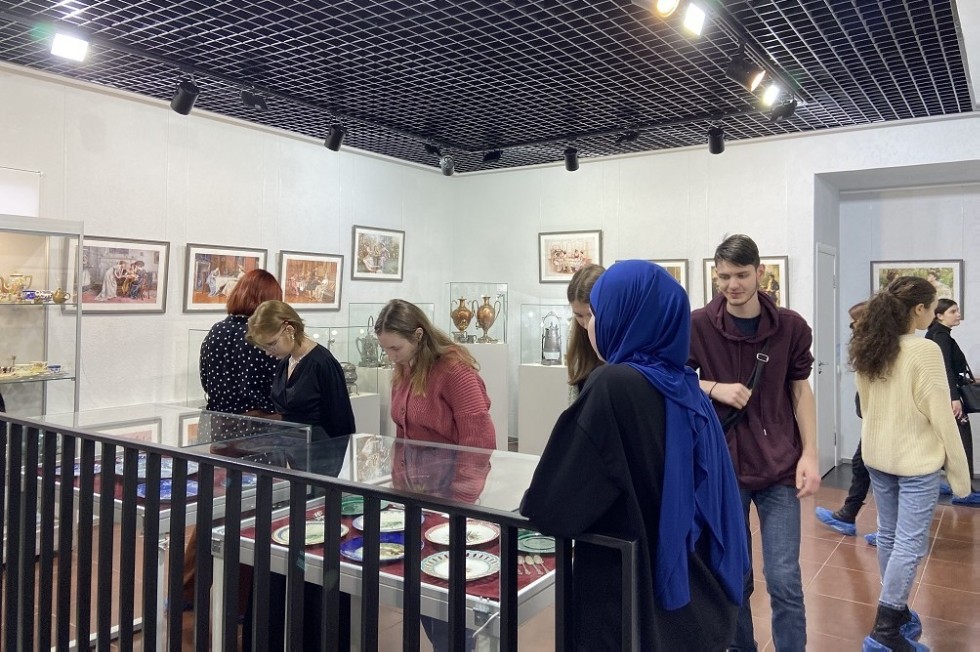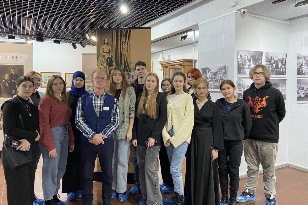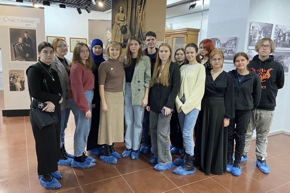 В ходе экскурсии студенты познакомились с представленными на выставке архивными фотографиями императорской семьи, воспоминаниями из неопубликованного дневника Марии Федоровны, ее картинами. Особенно заинтересовало в рассказе экскурсовода то, что Мария Федоровна лично подарила Елабужскому Александрийскому детскому приюту для девочек свой портрет в позолоченной раме.